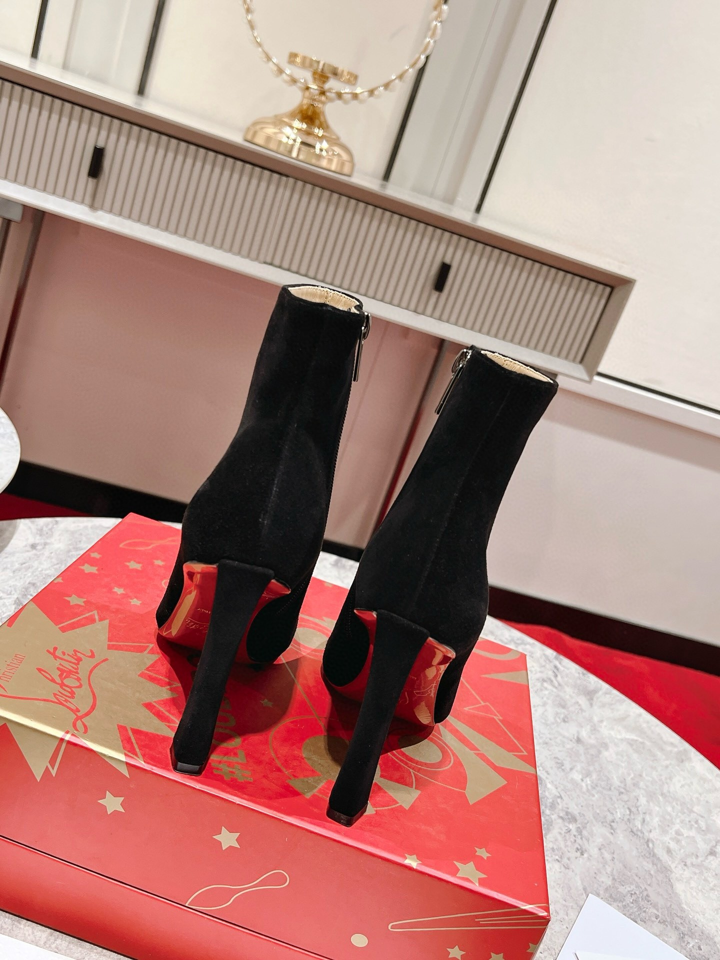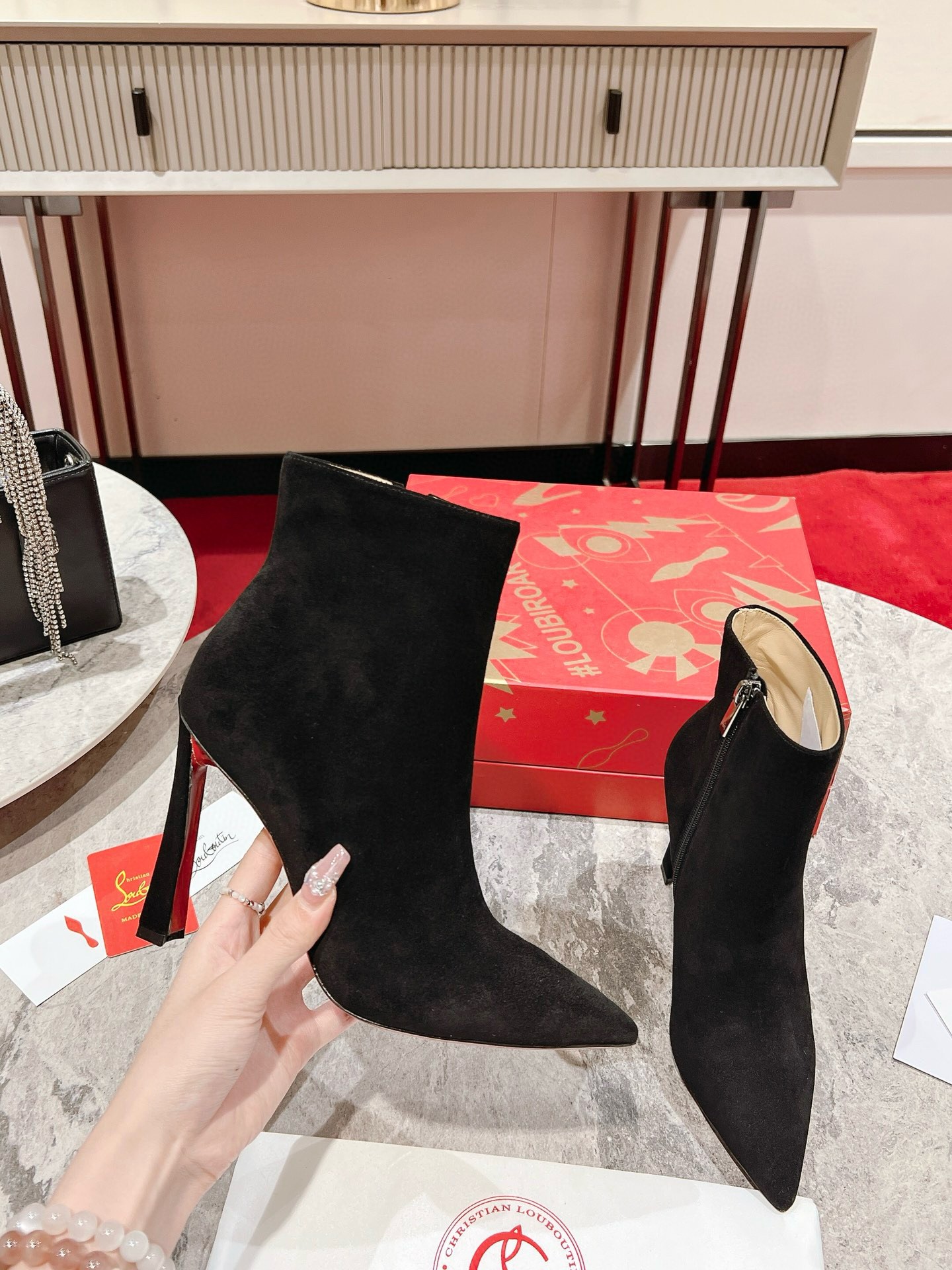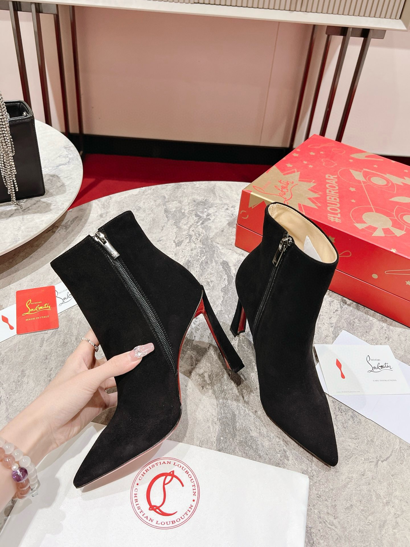 The Condora Stretch has a pointed toe like a bird’s beak. This is a sophisticated ankle boot in suede calf leather with a zip fastening. It has an 100 mm slanted heel, showcasing Maison Christian Louboutin’s innovative creativity. With its sleek lines playing with graphic elements, this model exudes timeless elegance.
