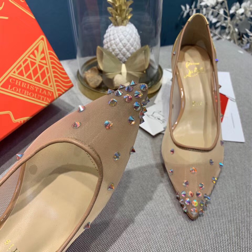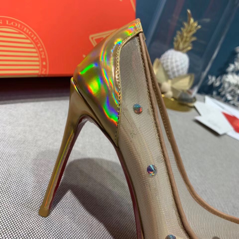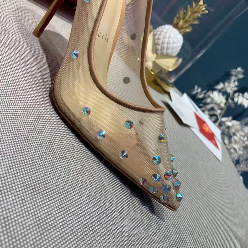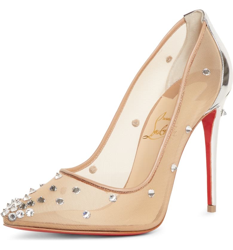 Christian Louboutin’s beige Degra pumps are characterised by iridescent spikes and leather panels for a striking light-catching effect. They’re crafted in Italy from mesh to a point-toe silhouette that rests on a leg-lengthening stiletto heel. Wear them beneath a lustrous slip dress for a glamorous occasion.