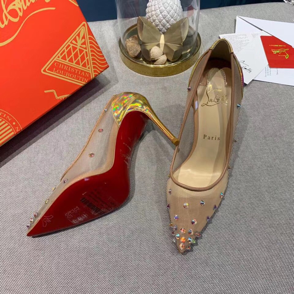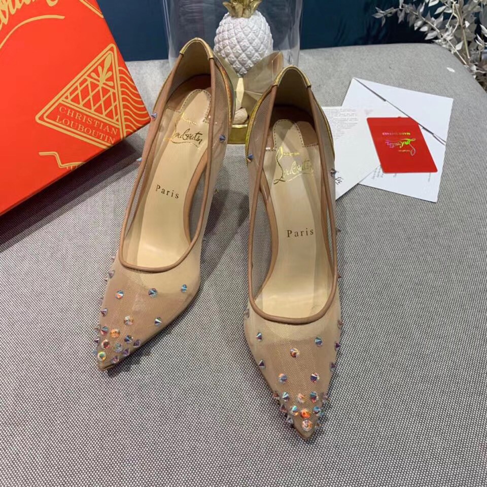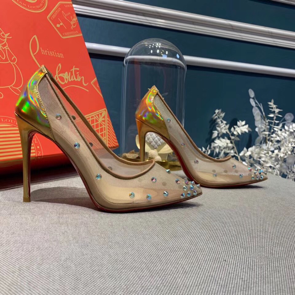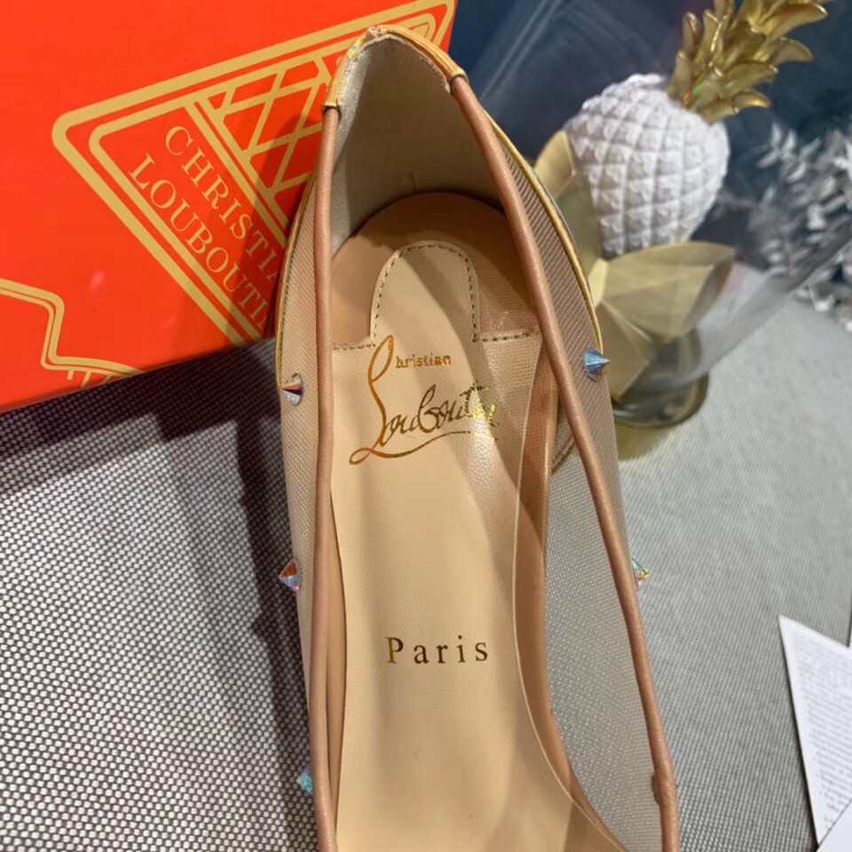 Christian Louboutin’s beige Degra pumps are characterised by iridescent spikes and leather panels for a striking light-catching effect. They’re crafted in Italy from mesh to a point-toe silhouette that rests on a leg-lengthening stiletto heel. Wear them beneath a lustrous slip dress for a glamorous occasion.
