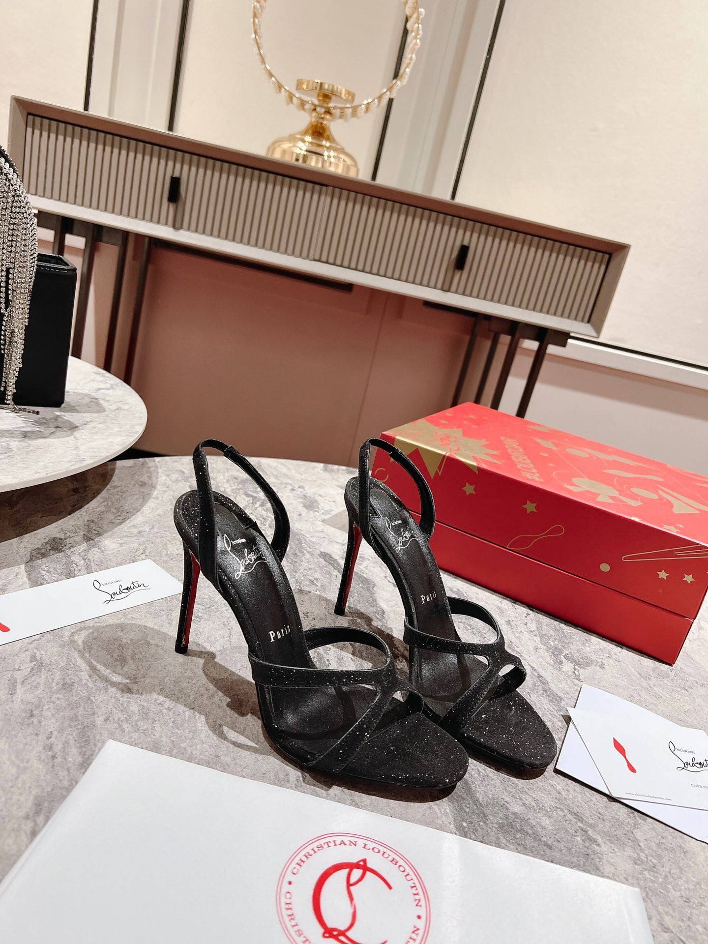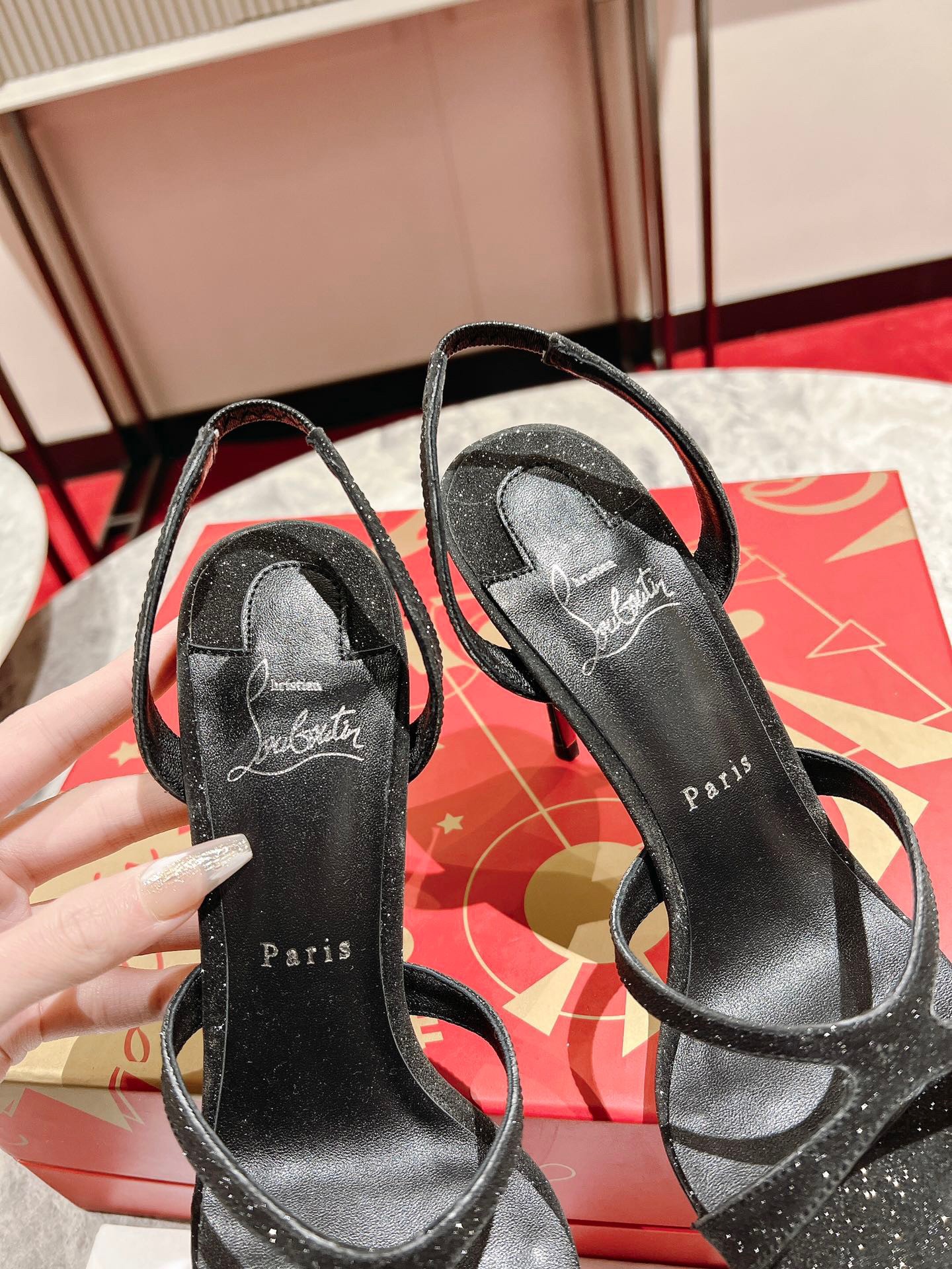 The Emilie is a sleek sandal that delicately reveals the foot. It has straps that cross over the front of the foot, showcasing Maison Christian Louboutin’s sophistication. Entirely crafted in glitter calf leather, it has a 100 mm heel and a slender elasticated ankle strap. A creative design with timeless elegance.