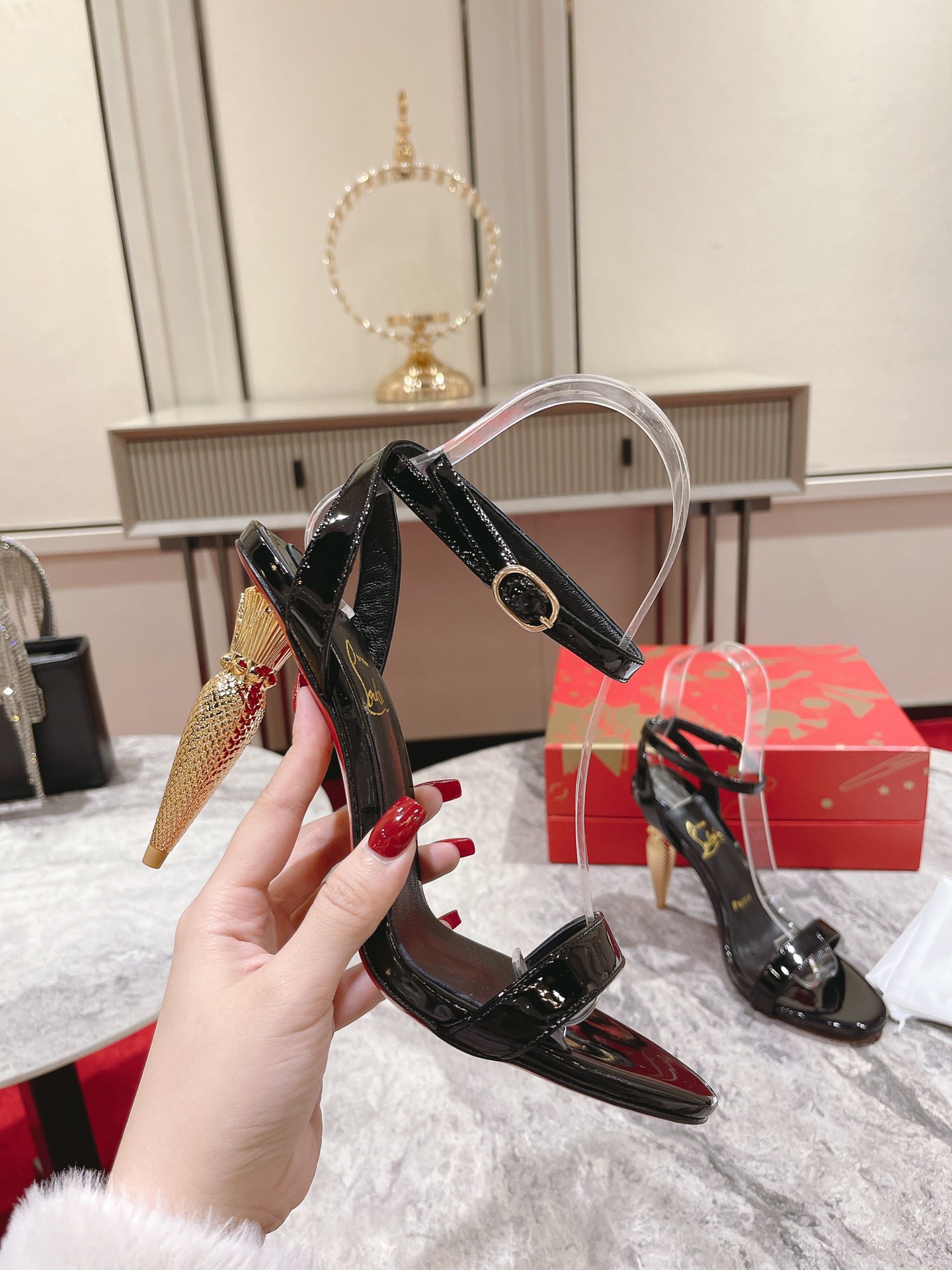 Christian Louboutin Lipqueen Sandals 100mm In Black Patent Leather