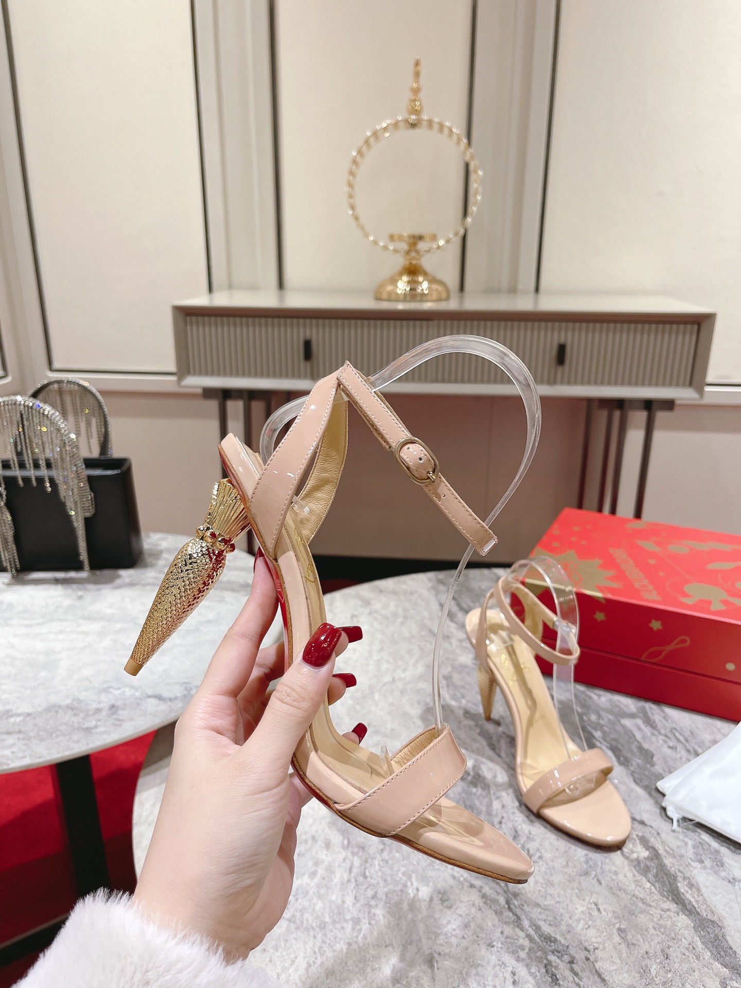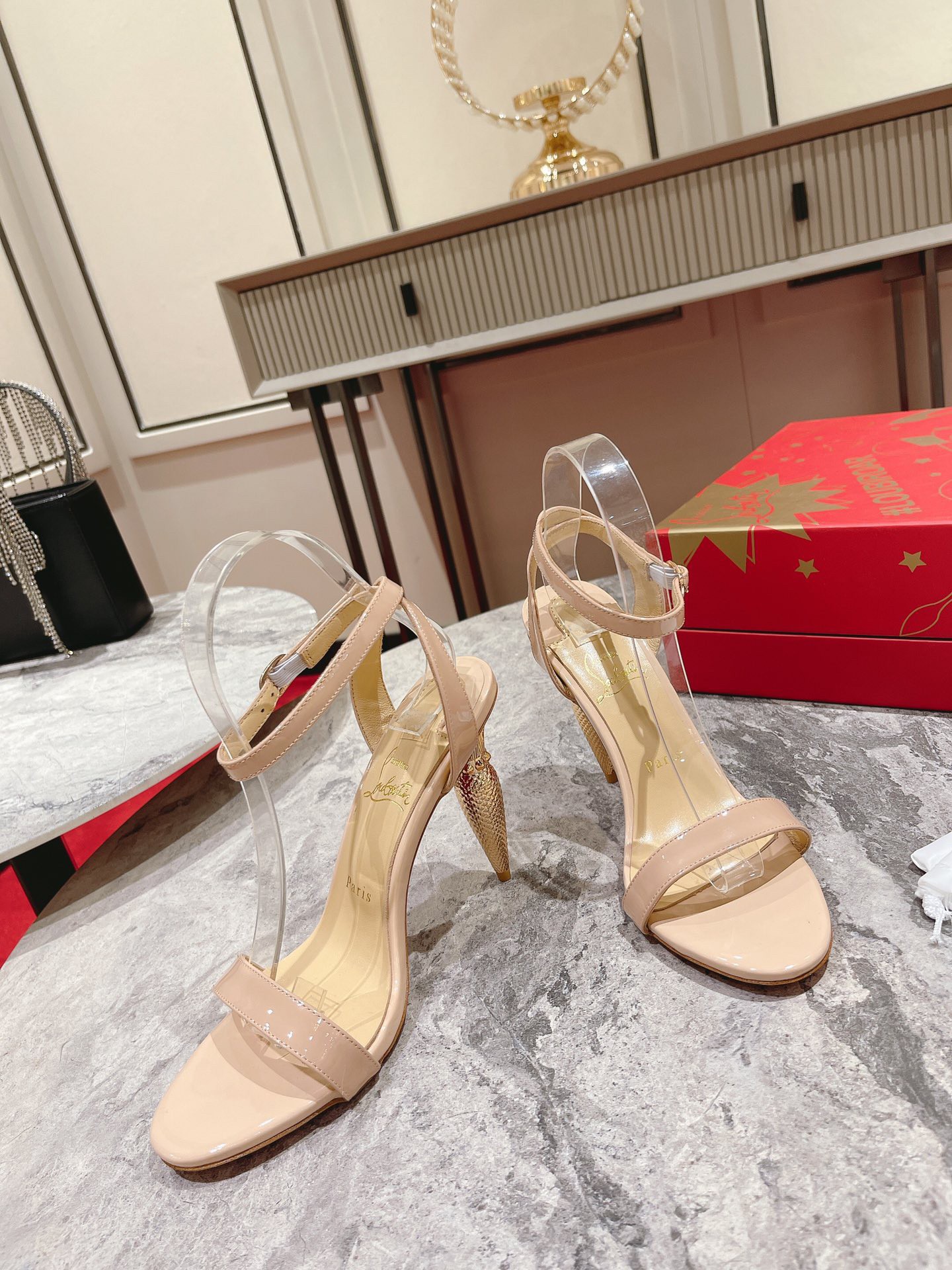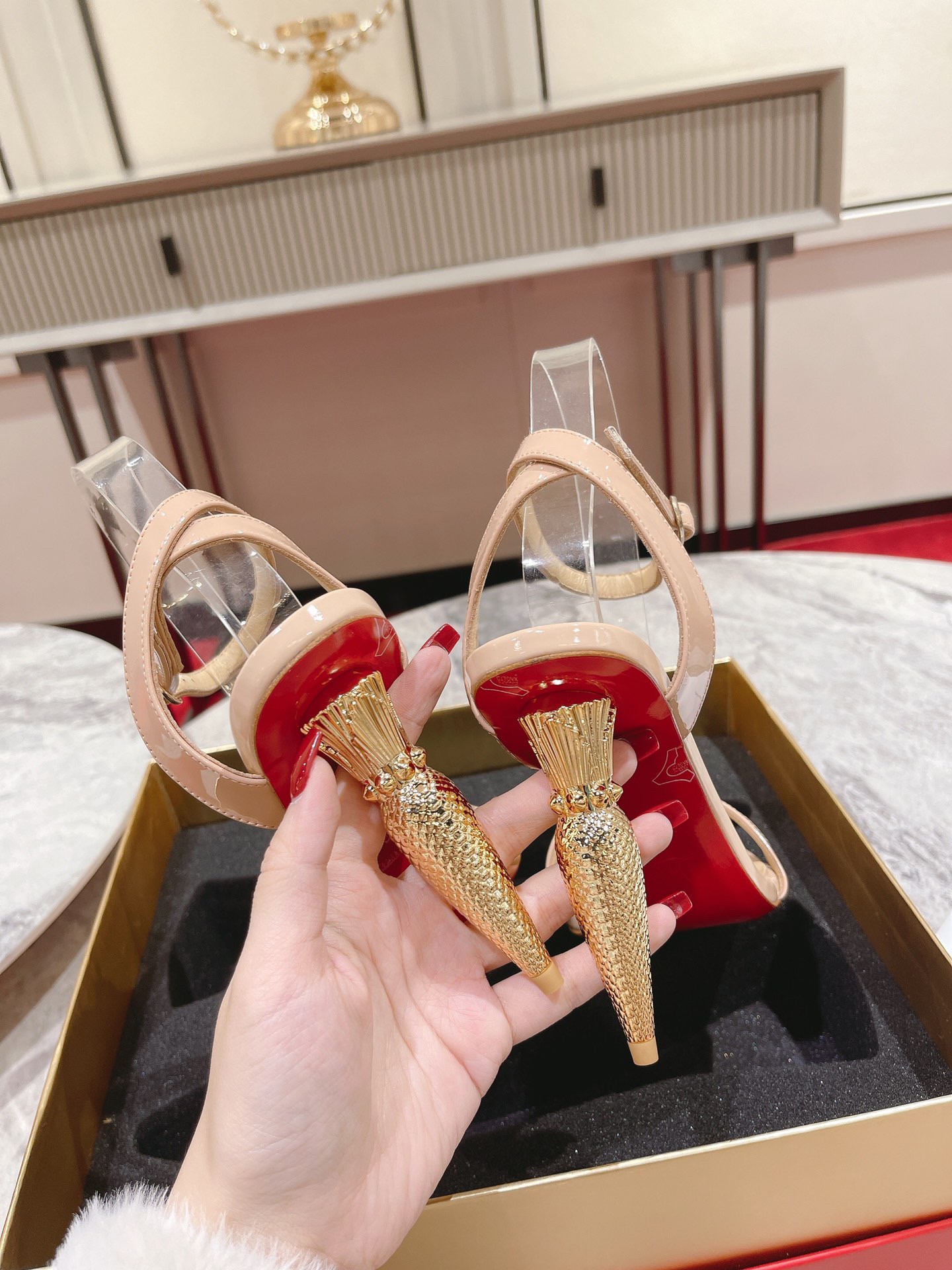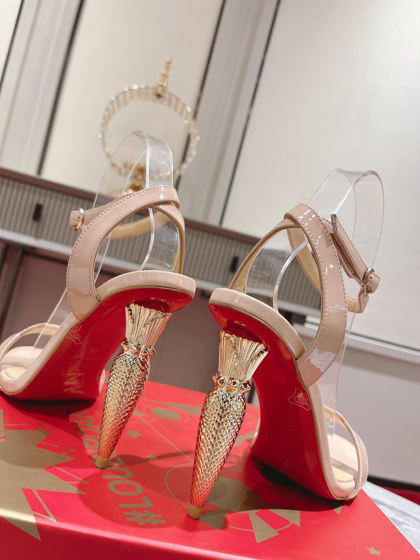 The Lipqueen sandal is both timeless and elegant. This model is part of the Loubi Mystery capsule inspired by designer Yaz Bukey’s Turkish origins and the board game, Clue. Crafted in glossy patent leather enhanced with delicate topstitching, it encases the foot with a band across the toe and slim ankle strap. This graphic boot has a 100 mm gold heel. A captivating design evoking Maison Christian Louboutin’s iconic red lipstick.
