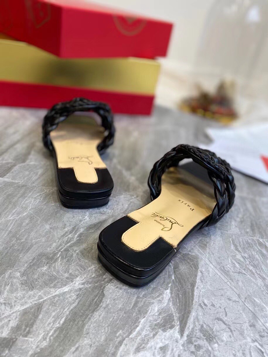 Christian Louboutin’s Marmela sandals stand out in a sea of flat footwear thanks to their elegant silhouette and expert use of fine materials. The plaited nappa leather upper showcases the Maison’s creative savoir-faire while remaining comfortable on the foot, while the recognisable glossy red sole offers subtle luxe appeal.