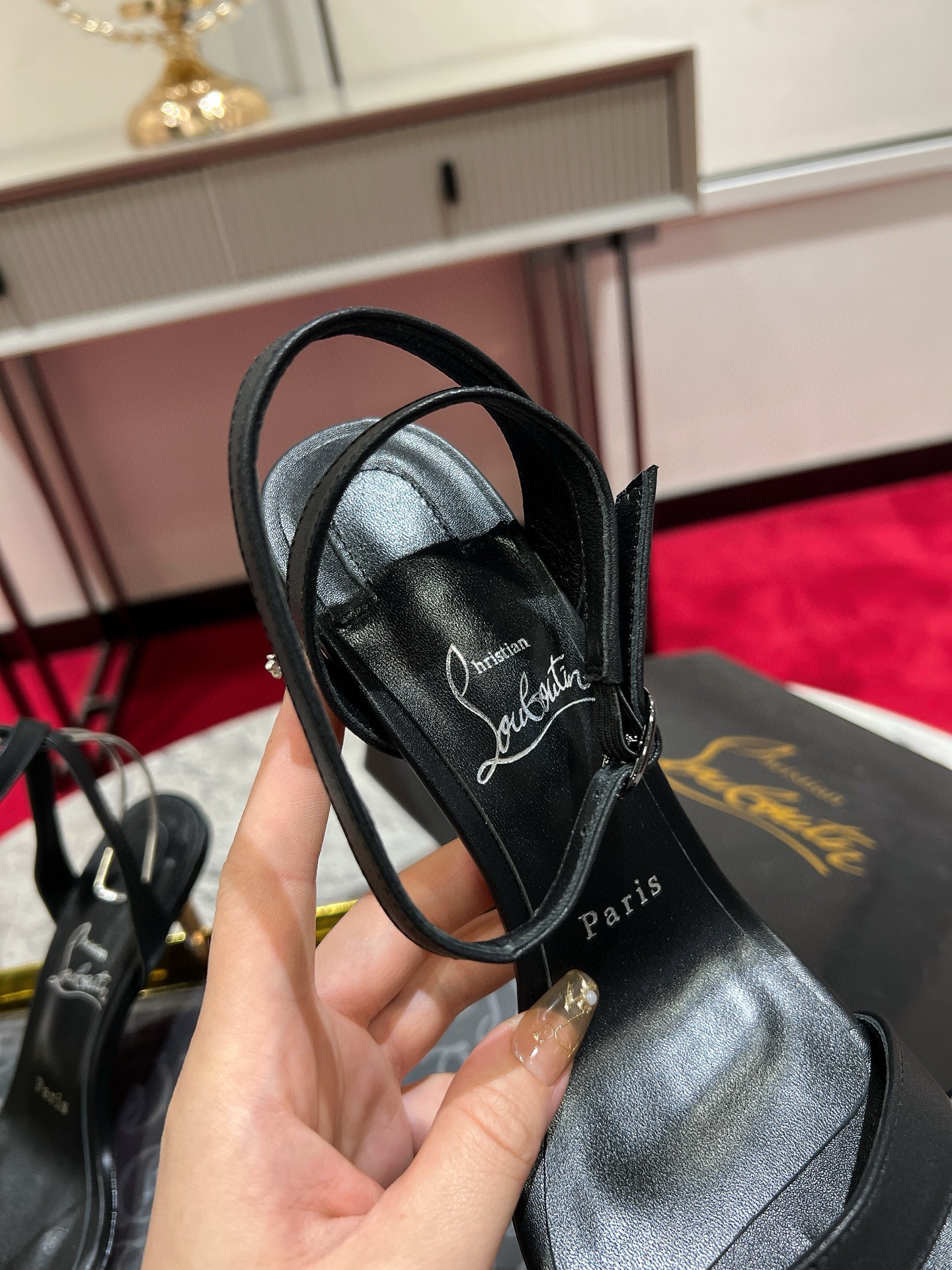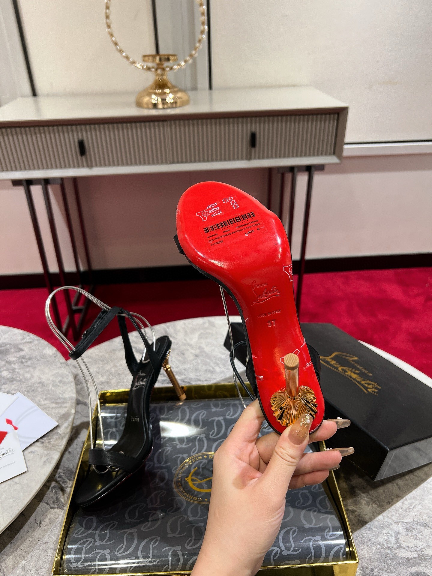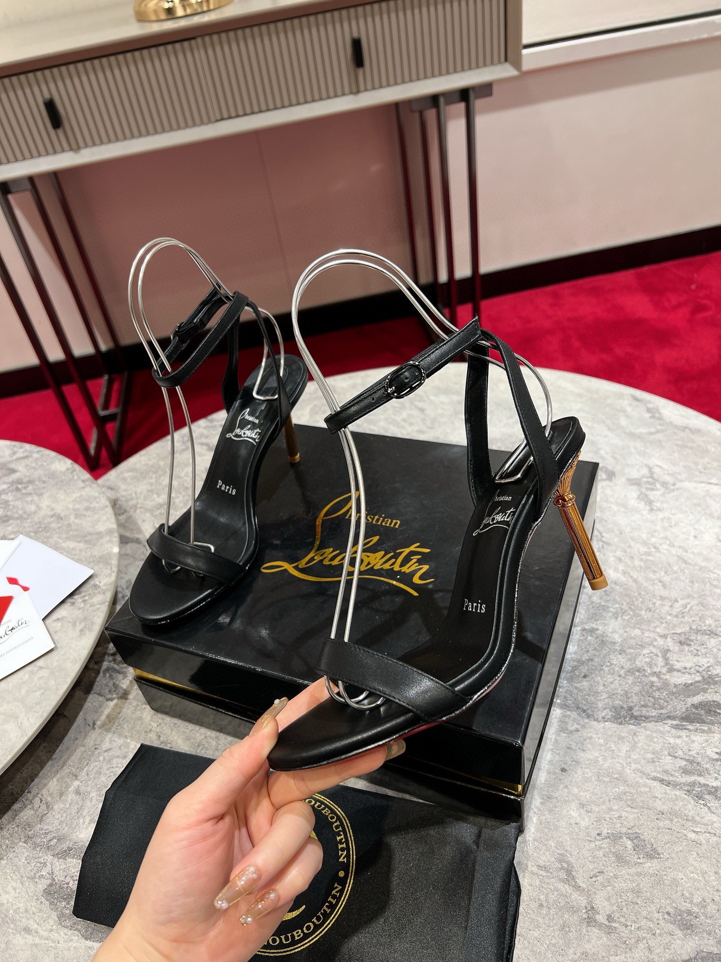 The Mascasandal is a like a jewel, packed with creative details. This sandal is crafted in black calf leather and features an 85 mm heel inspired by Maison Christian Louboutin’s mascara, evoking ancient columns. It has a slender strap around the ankle and a sophisticated low-cut vamp.