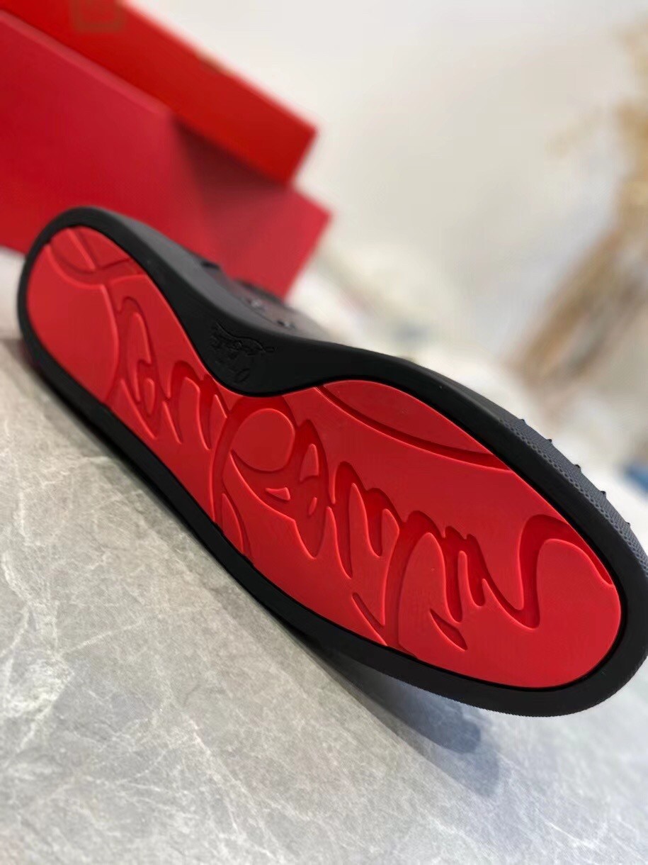 The Lou spikes is a classic 1980’s inspired Hi-top sneaker – a reworked version of the iconic Louis with the addition of Maison Christian Louboutin’s audacious signature spikes evenly hand-placed across the toe. This sophisticated model is crafted in Black calfskin leather and features black laces, soles and edging; even the iconic spikes across the toe are Black, creating an understated effect.