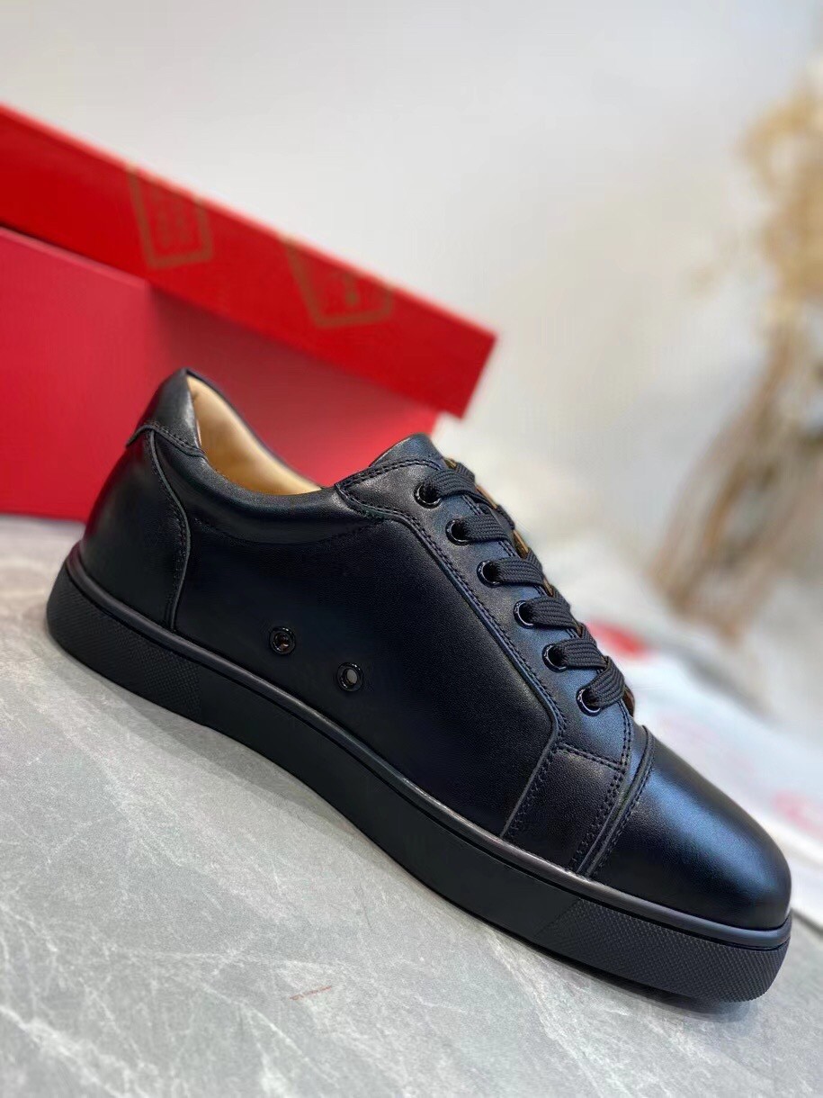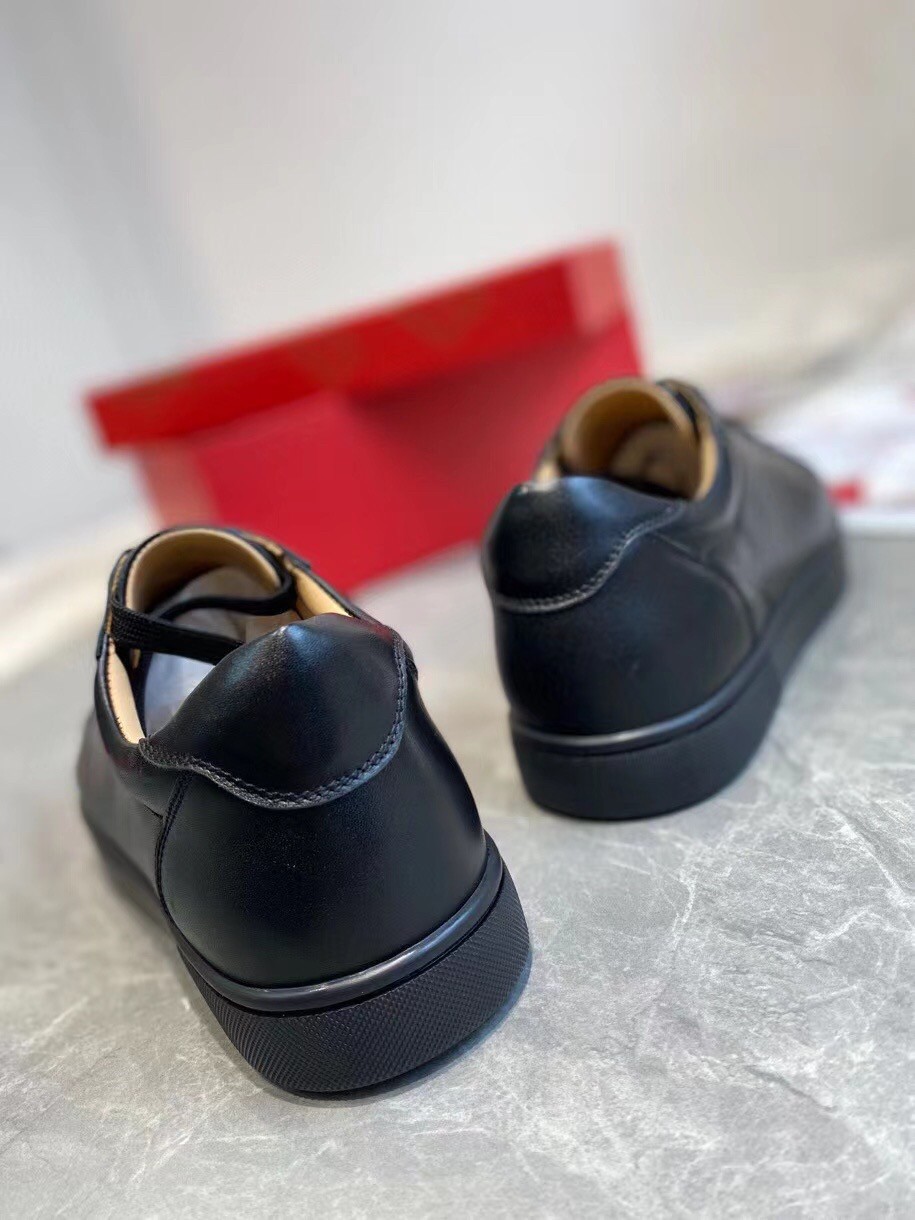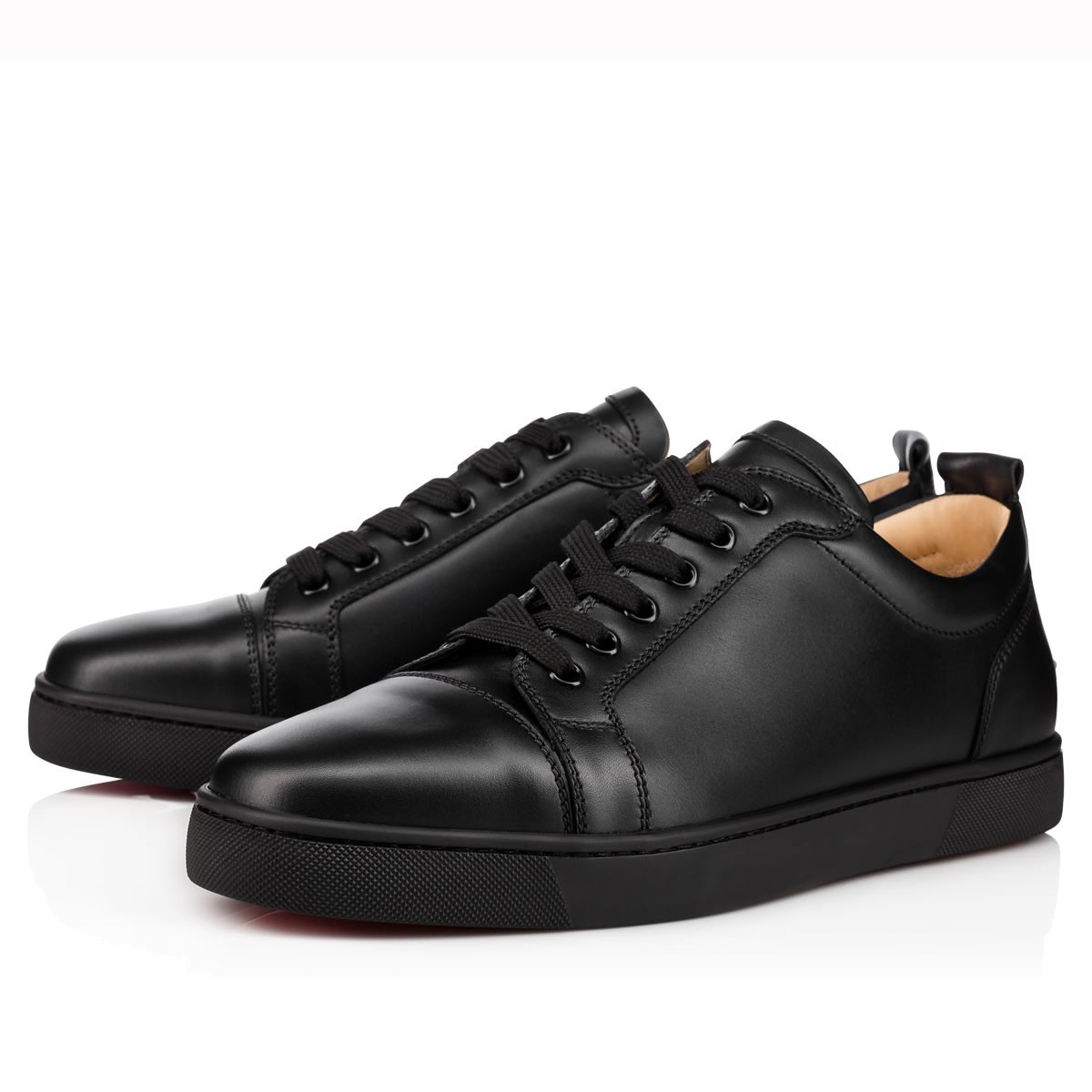 Taking inspiration from the tennis shoes of the 1980s, the Louis Junior Flat effortlessly blends retro chic with audacious modern elements. A master of reinvention, this sneaker takes on new textures and fabrics each season. This model features a classic look in all-over smooth Black calfskin leather, for those days when only timeless style will do. A signature Louboutin red sneaker sole adds a hint of daring.