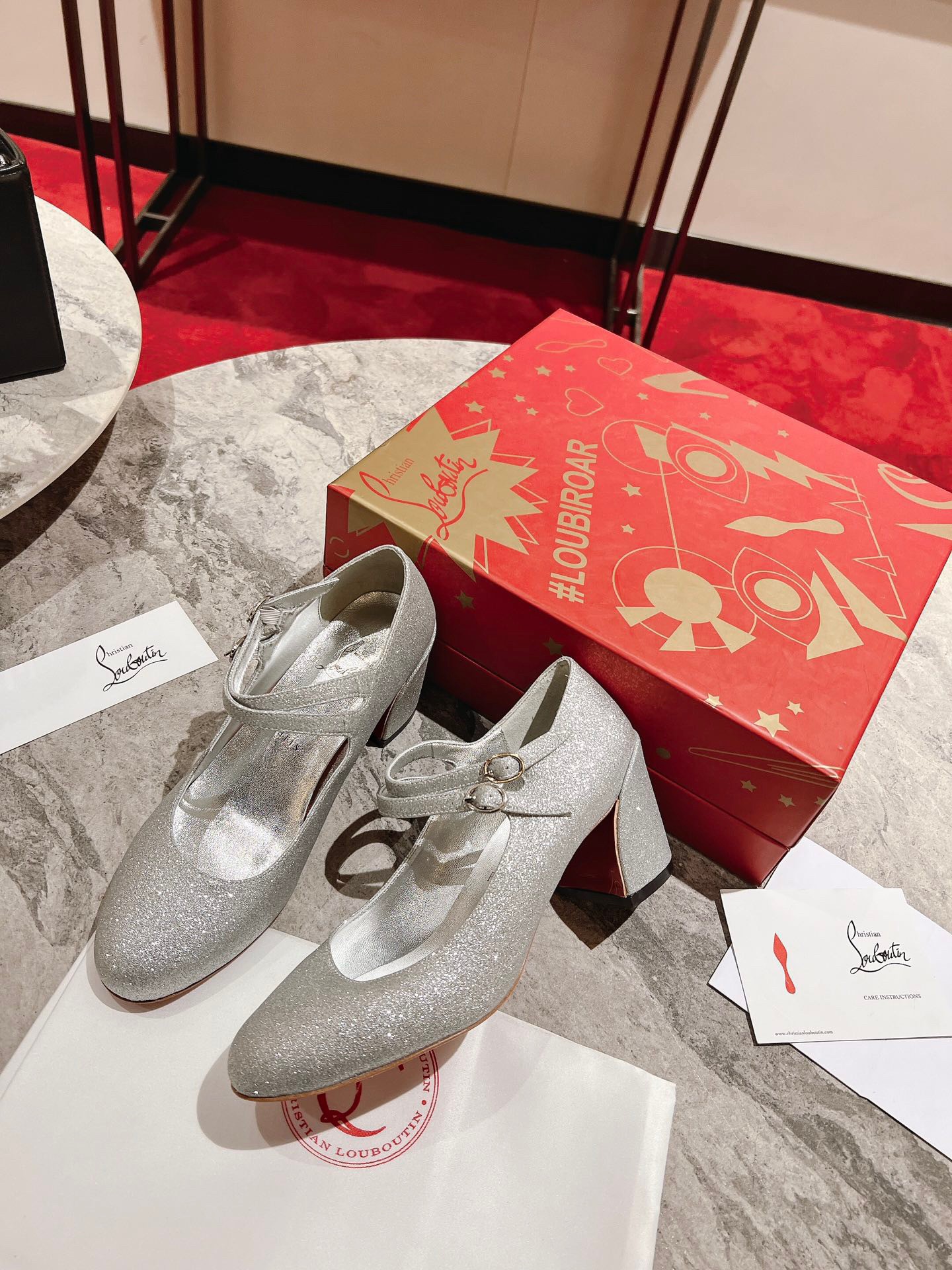Christian Louboutin Miss Jane Pumps 55mm In Silver Glitter Leather