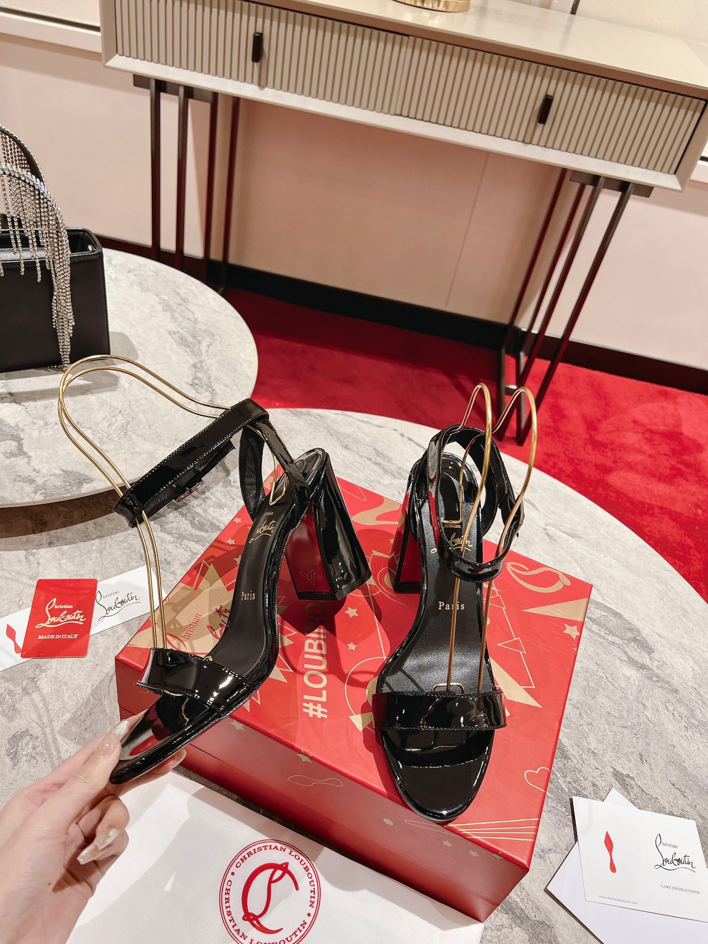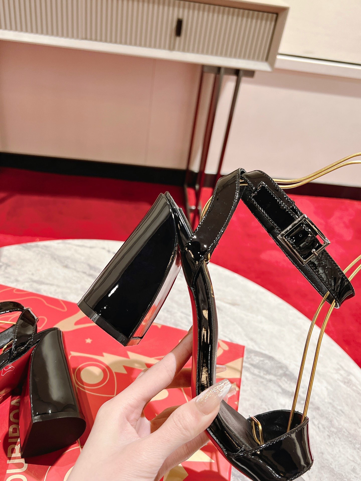 A summery model with sleek lines, the Miss Sabina sandal features an 85 mm asymmetrical heel. The straps cross behind the ankles and are adorned with delicate square clasps. Entirely crafted in patent calf leather with discreet topstitching, it showcases Maison Christian Louboutin’s creativity and expertise.