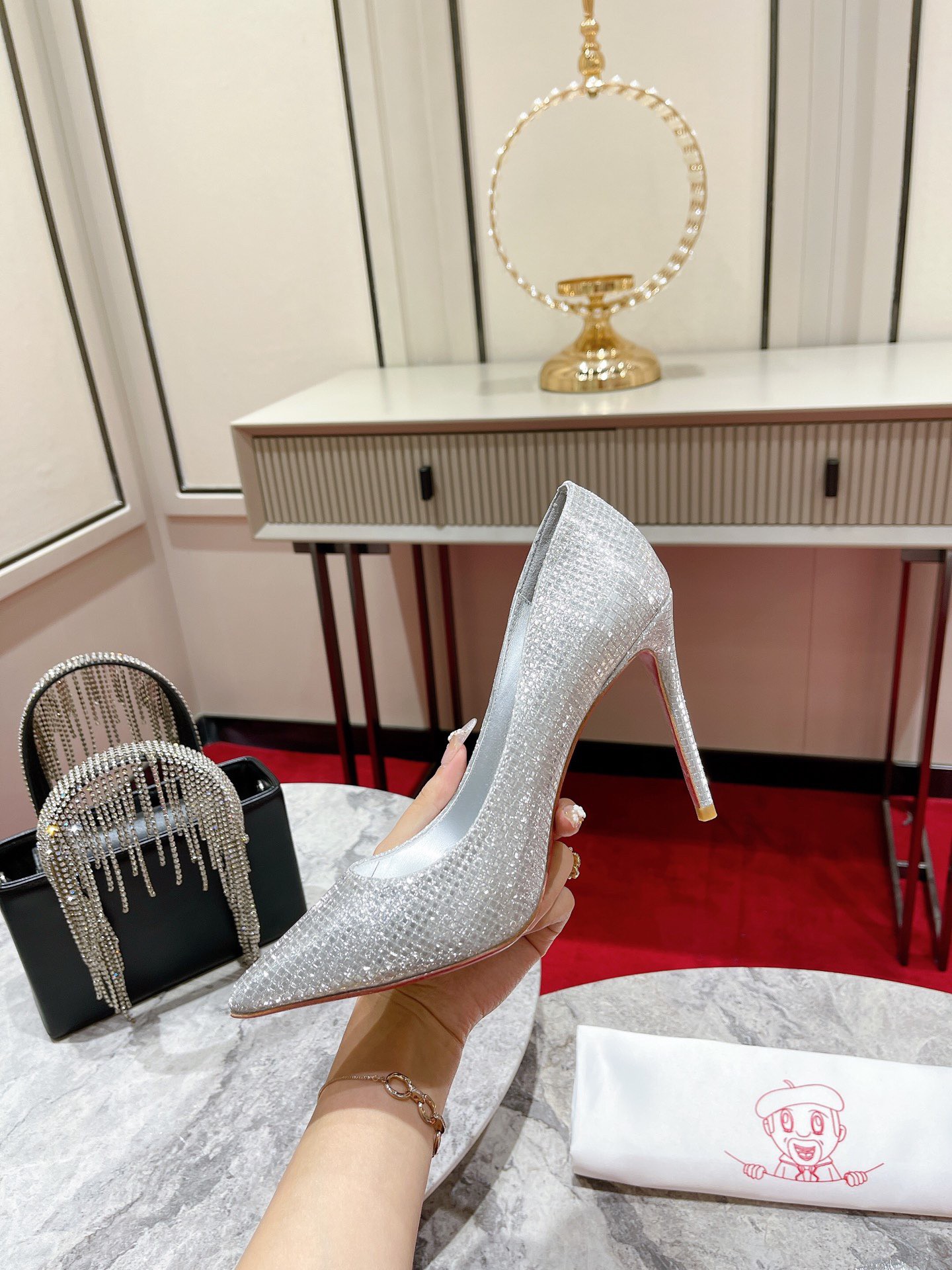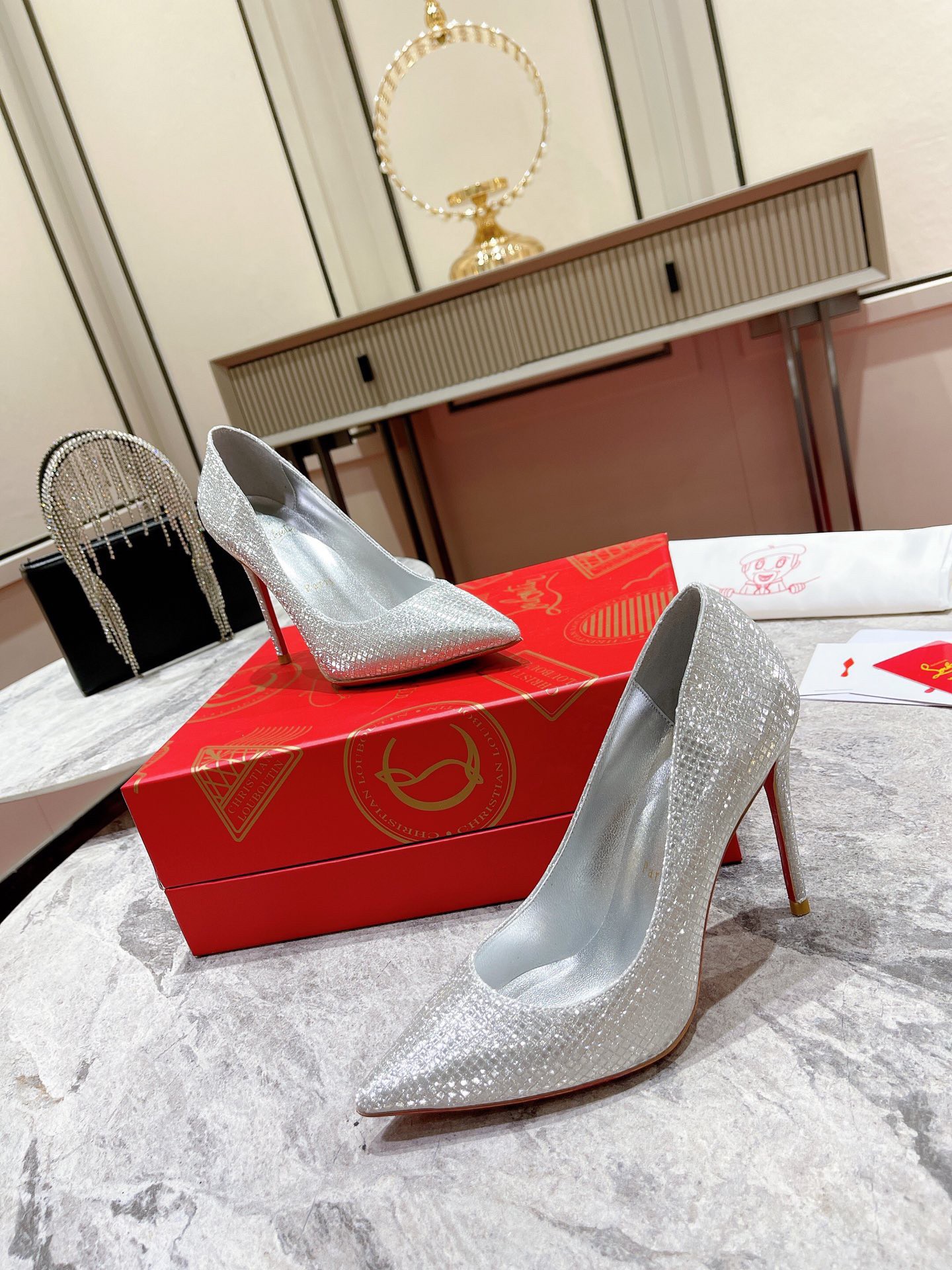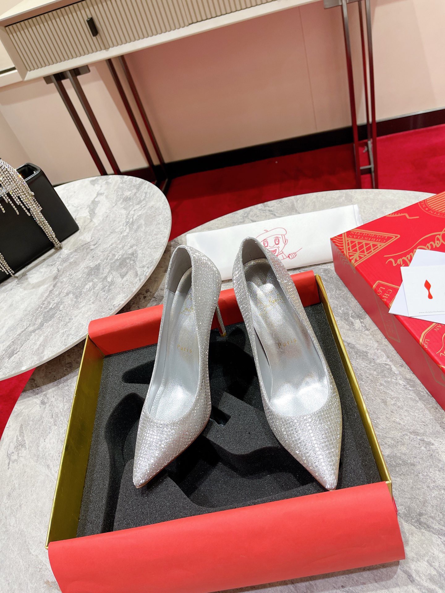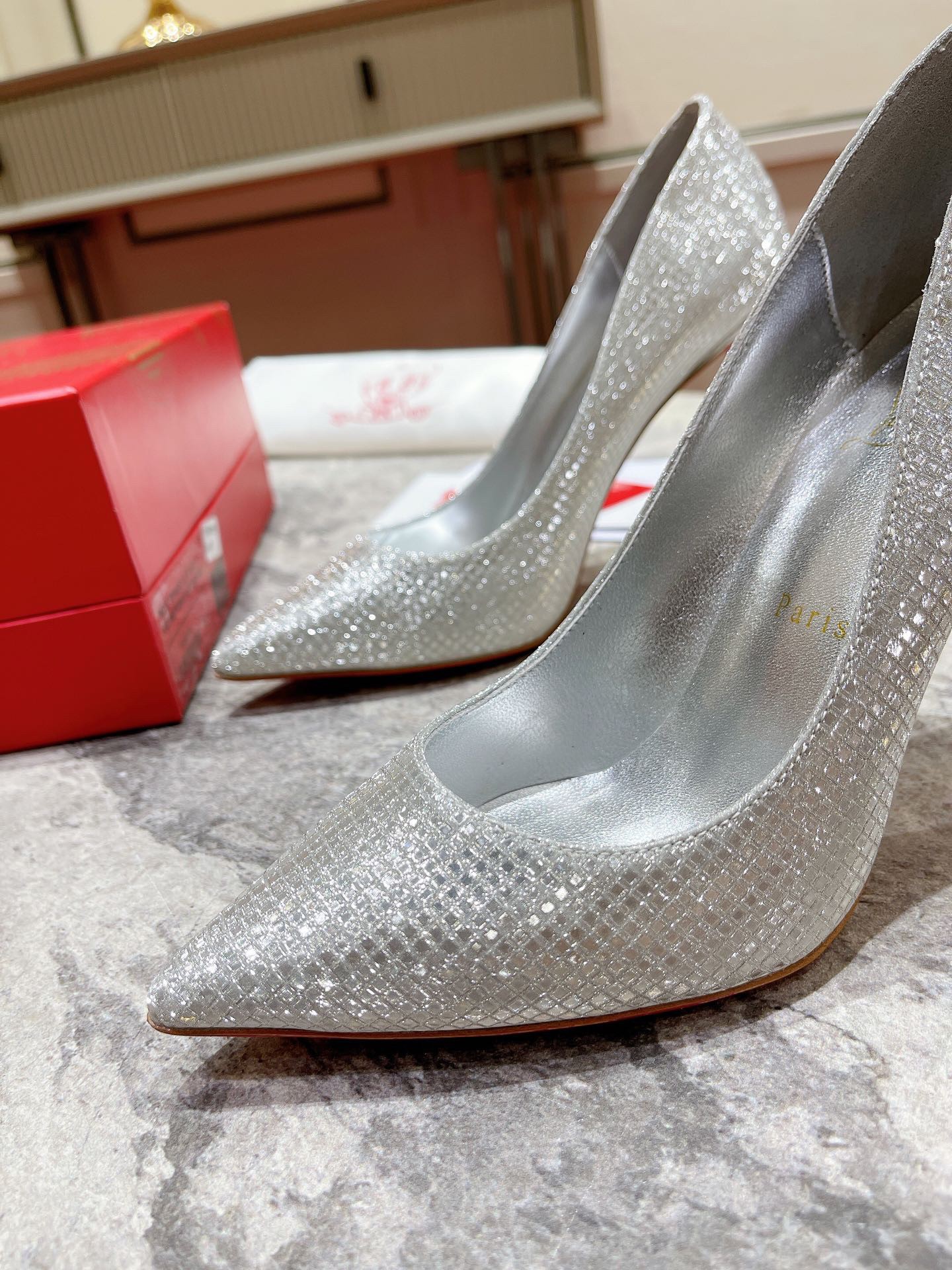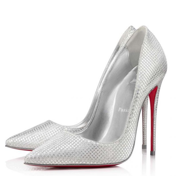 The sophisticated So Kate pump is an iconic shoe from Maison Christian Louboutin. Set on a lofty 120 mm heel, it features a low-cut vamp that elegantly reveals the foot. This season, it comes in a luminous iridescent silver leather, inspired by childhood. This modern yet timeless stiletto has a seductive and refined allure.