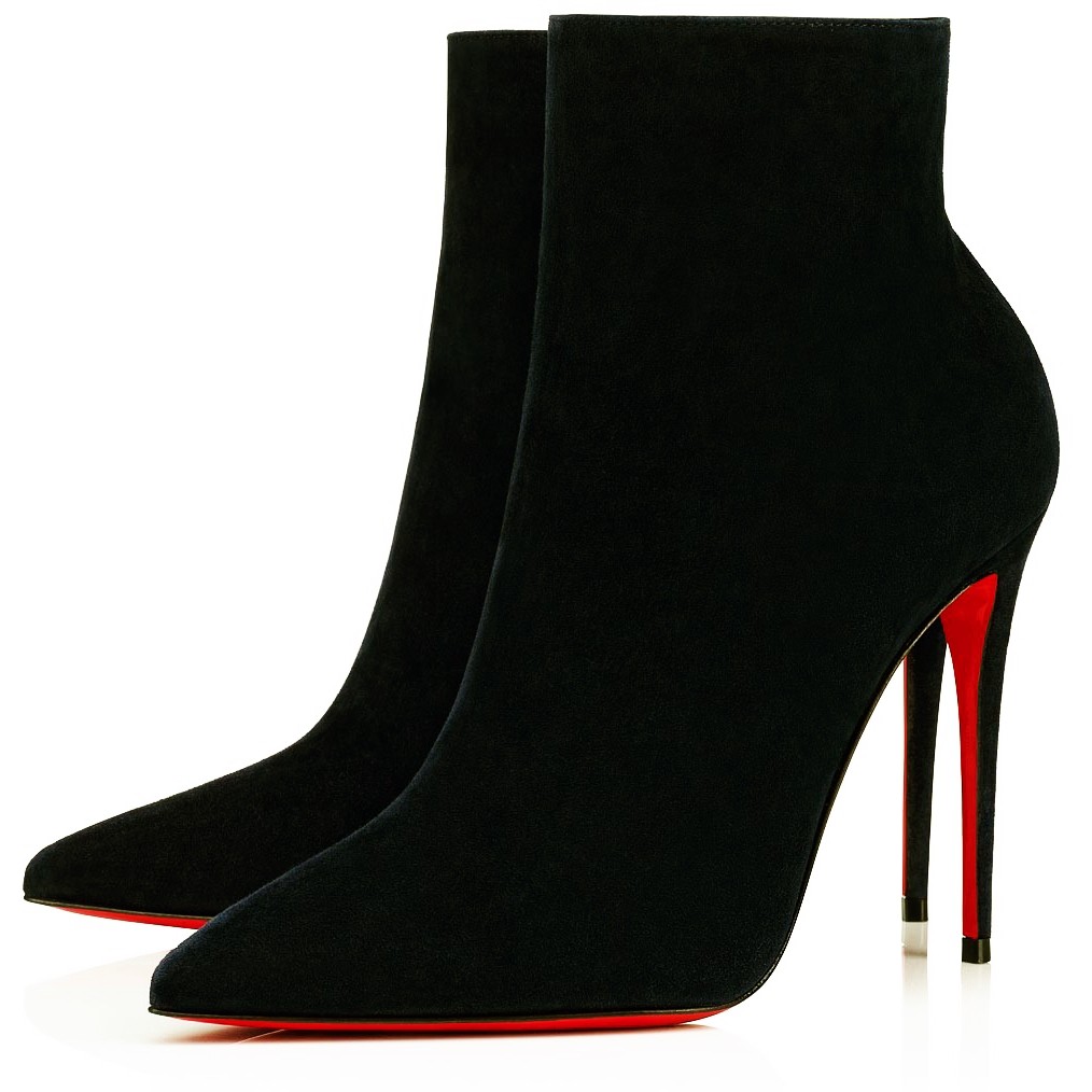 Combining simple elegance with clean lines, the So Kate Booty has become a true icon of Christian’s design repertoire. Curved lines gently encase the foot, secreted by a zip closure, and plunge down to a pronounced vamp ending in a winklepicker point. The sophisticated upper perches atop a wearable 100-mm stiletto heel that elongates the leg.