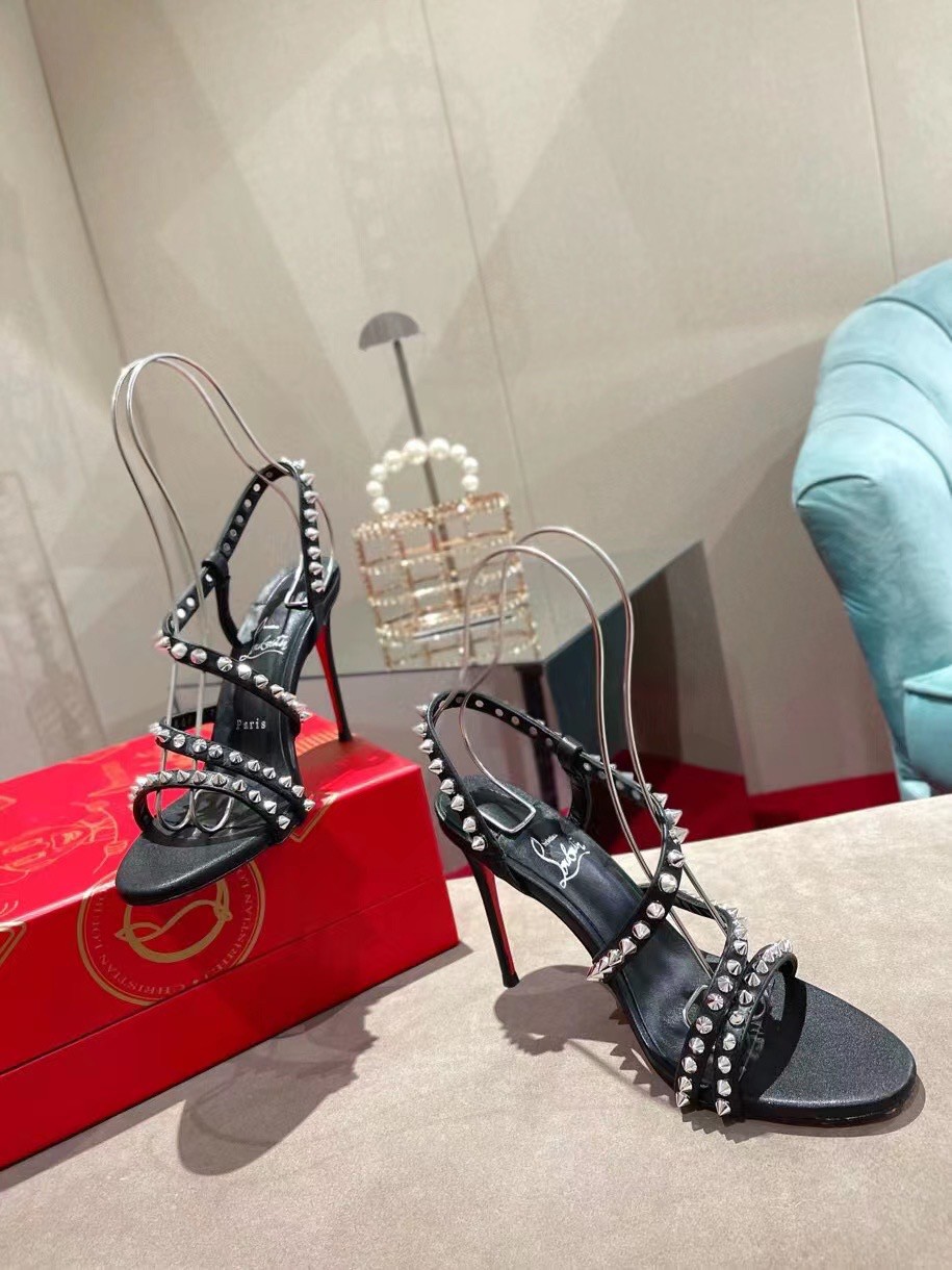 Christian Louboutin Lipstrass Queen Sandals 100mm In Black Satin