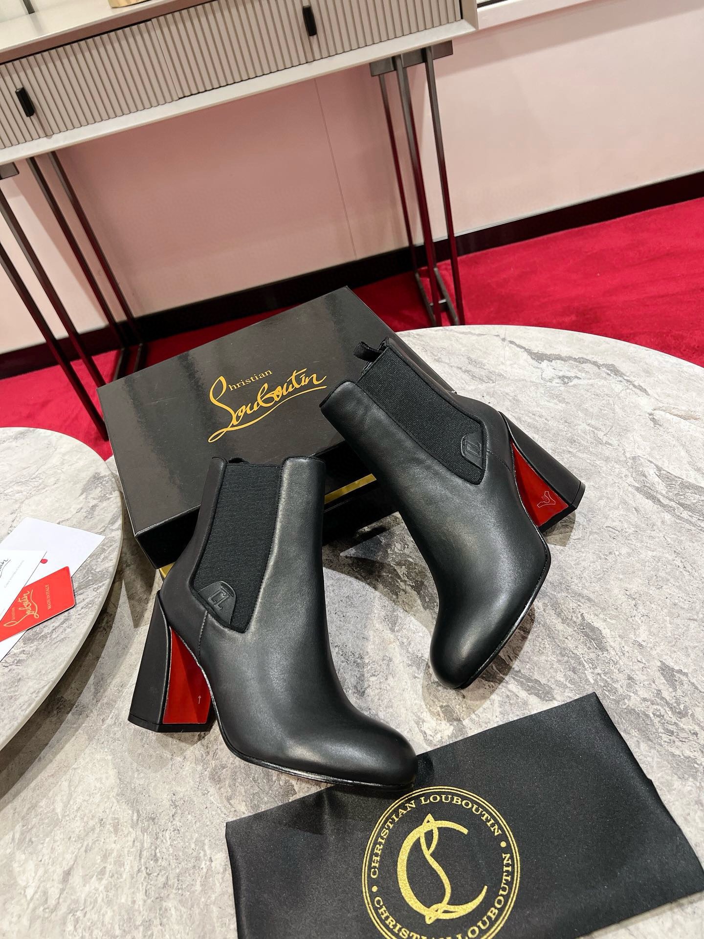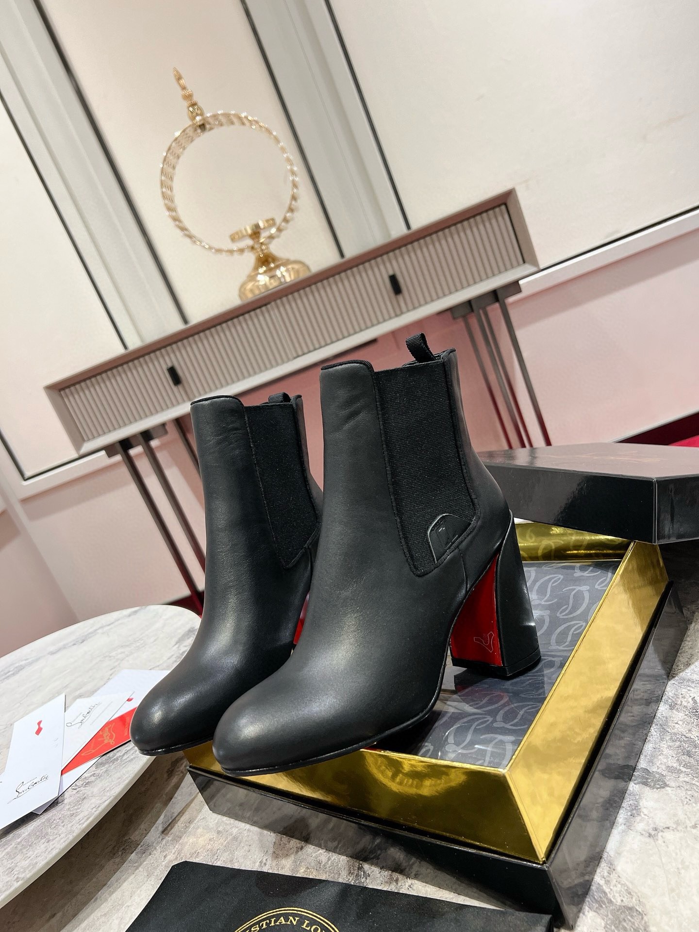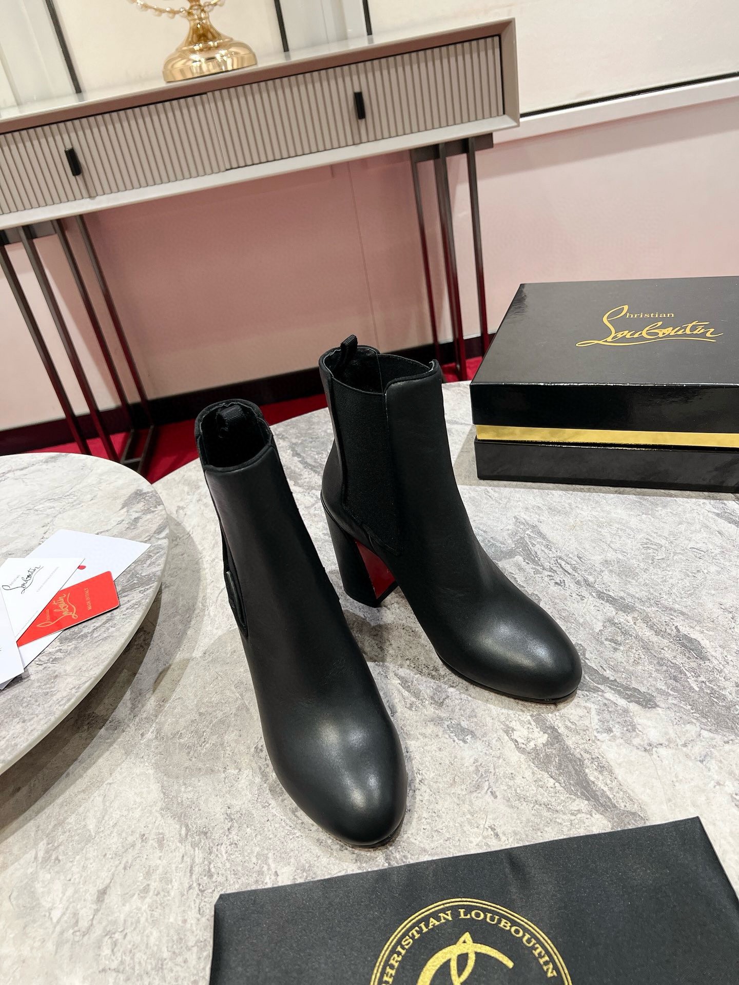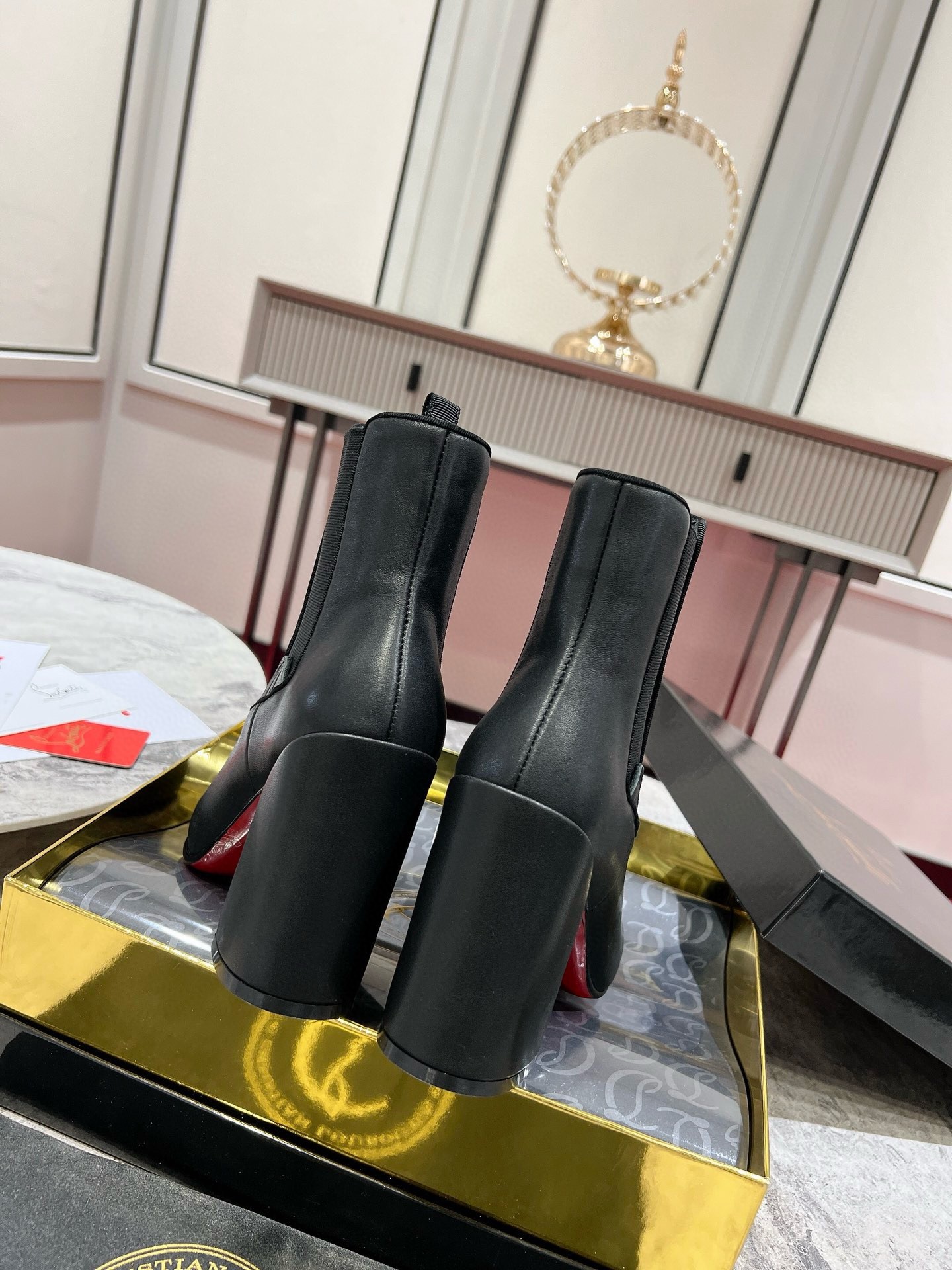 The Turelastic booty is a slim, elegant ankle boot with tapered lines and a toe that’s somewhere between curved and pointy. It features a sculpted, almost crescent-shaped, 85 mm sabot heel that exudes sophisticated simplicity. This very wearable model by Maison Christian Louboutin is ideal for autumn days and is crafted from oiled calf leather in all-over black, for a timeless style that works with any outfit.