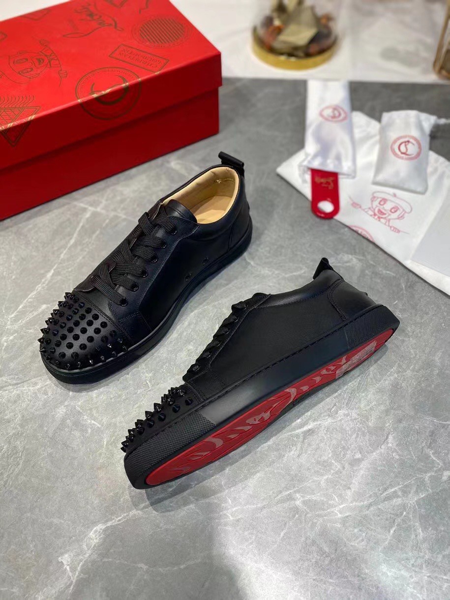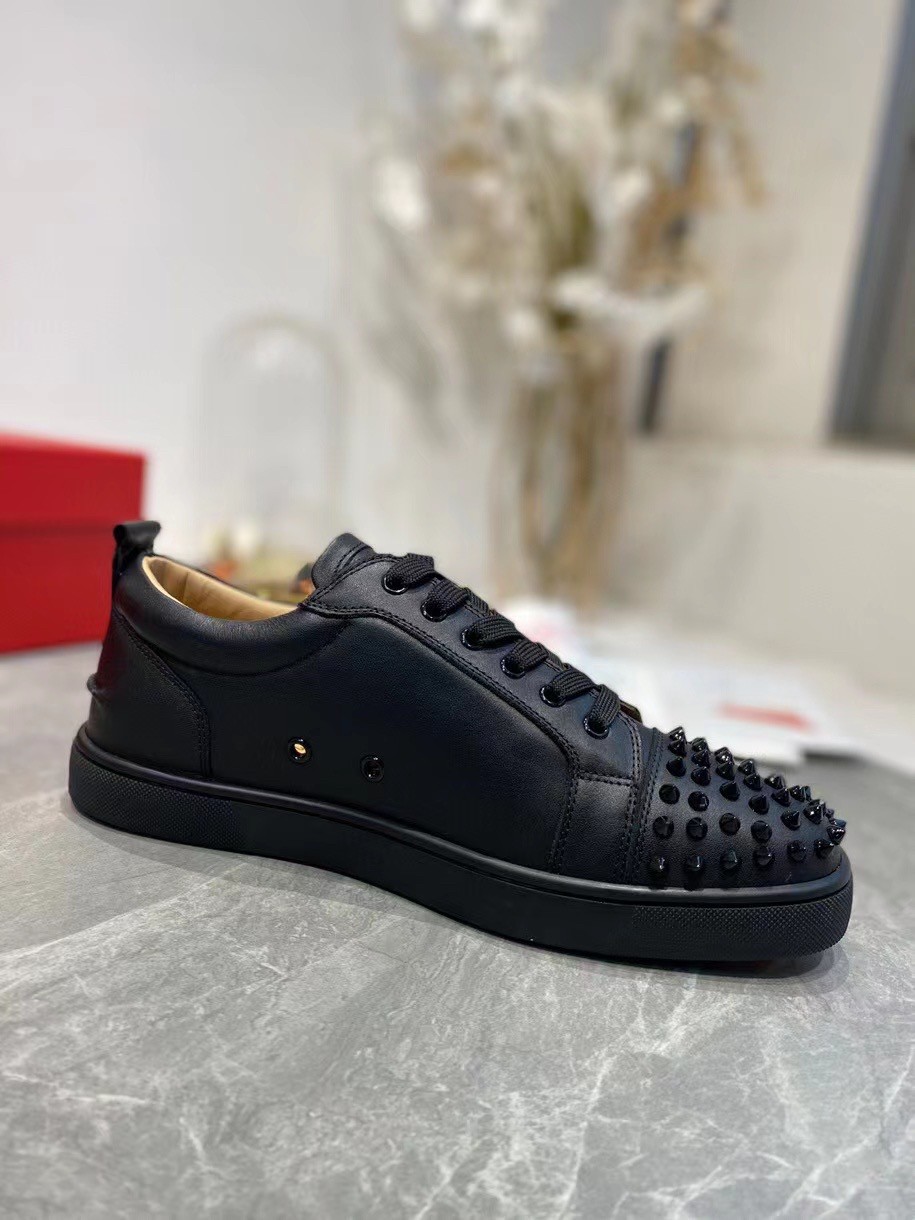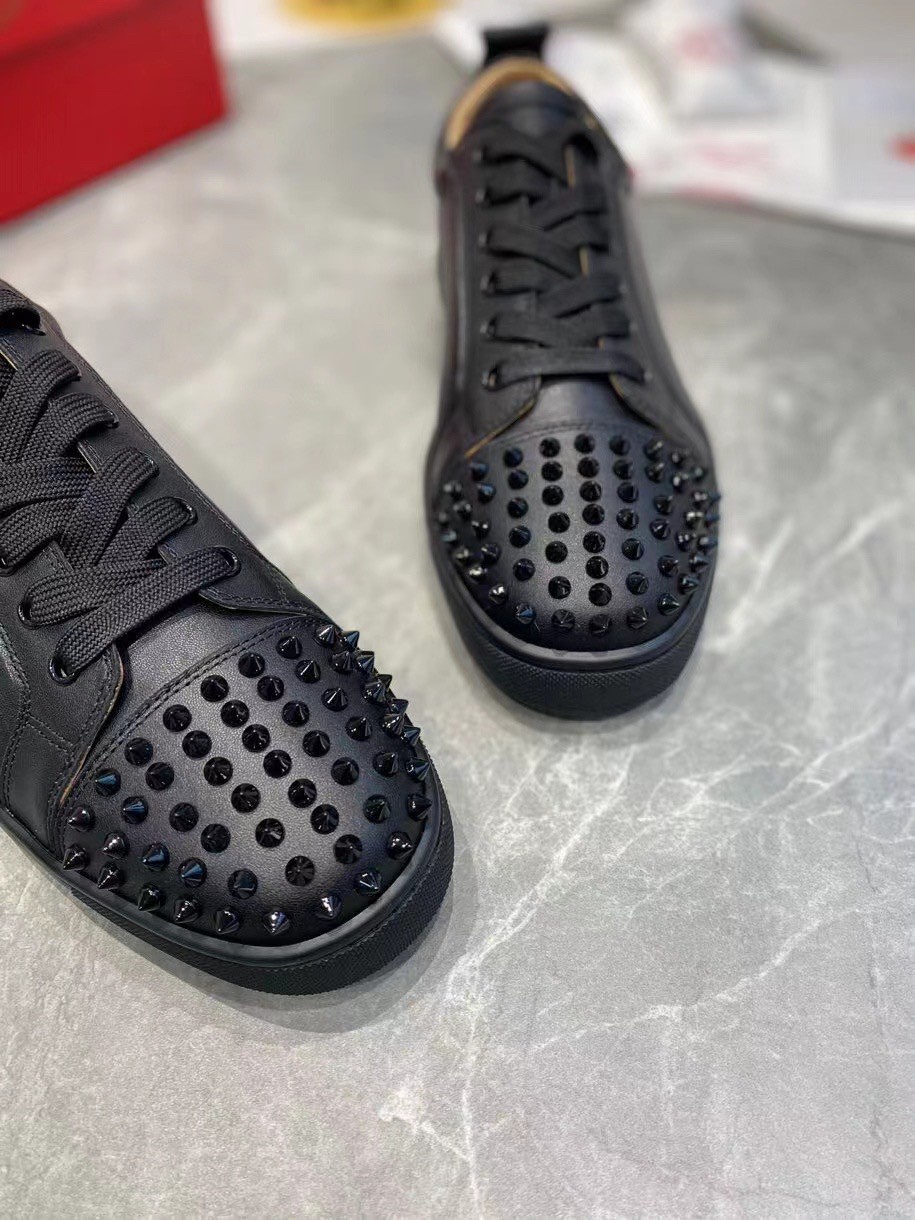 The low-top Louis Junior is a core design in the Christian Louboutin sneaker edit, and this season, Louis Junior Spikes sees a black calfskin version decorated with the designer’s rock n’ roll fancy—tone-on-tone signature spikes at the toecap. They’re lined in leather for a smooth, comfortable fit and feature a stitched scar on the back counter for added edge.