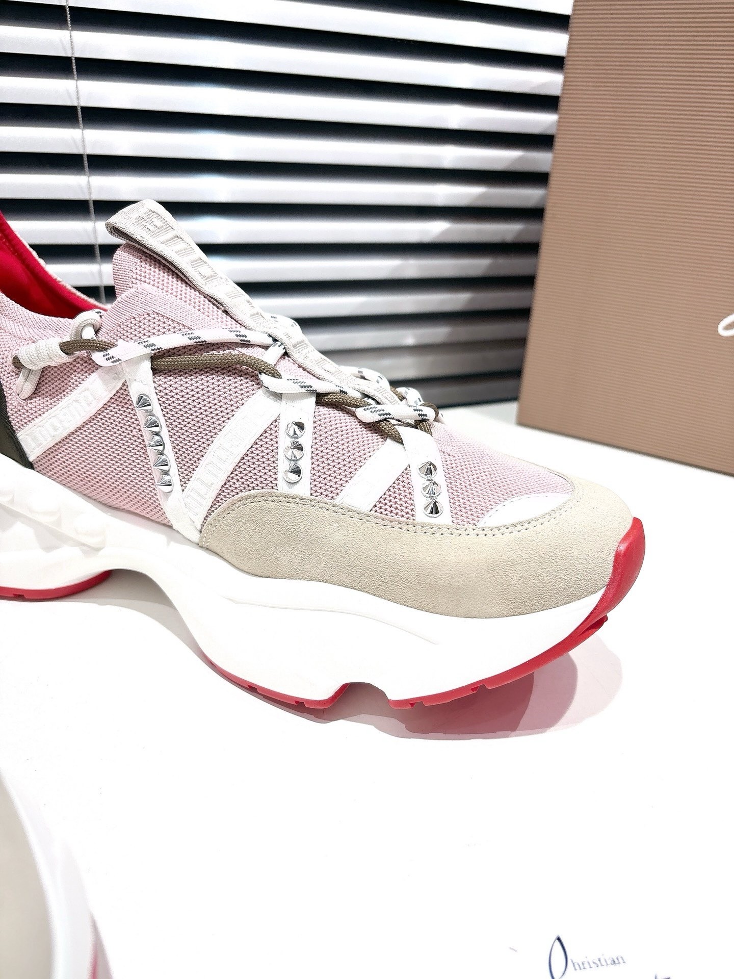 Christian Louboutin Women’s Trailnrun Sneakers in Albatre Mesh and Suede
