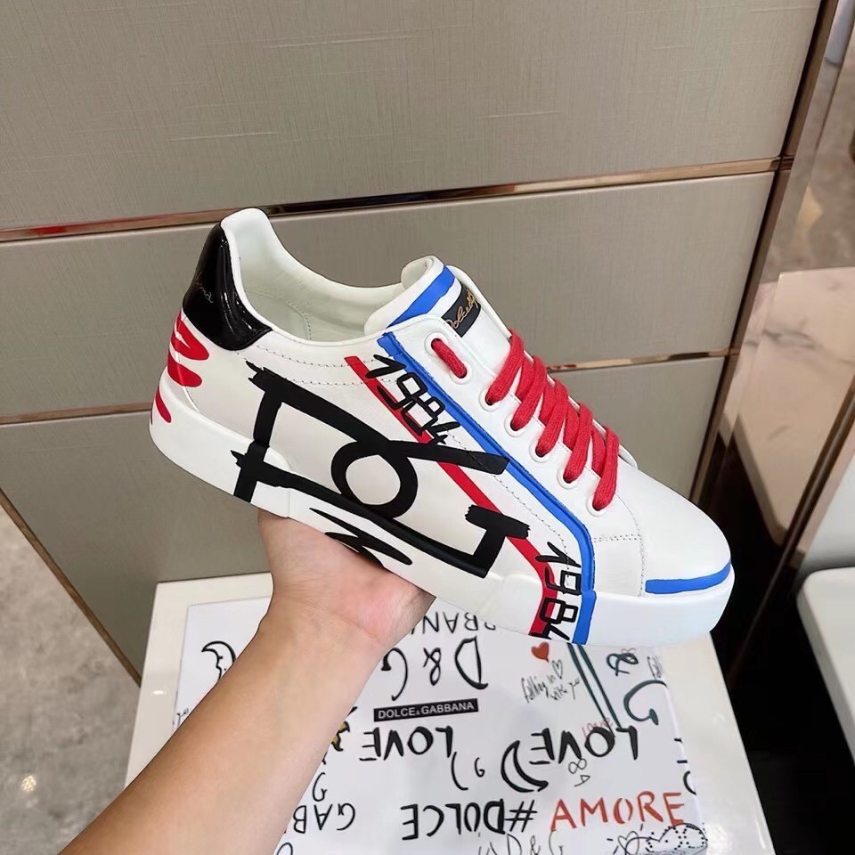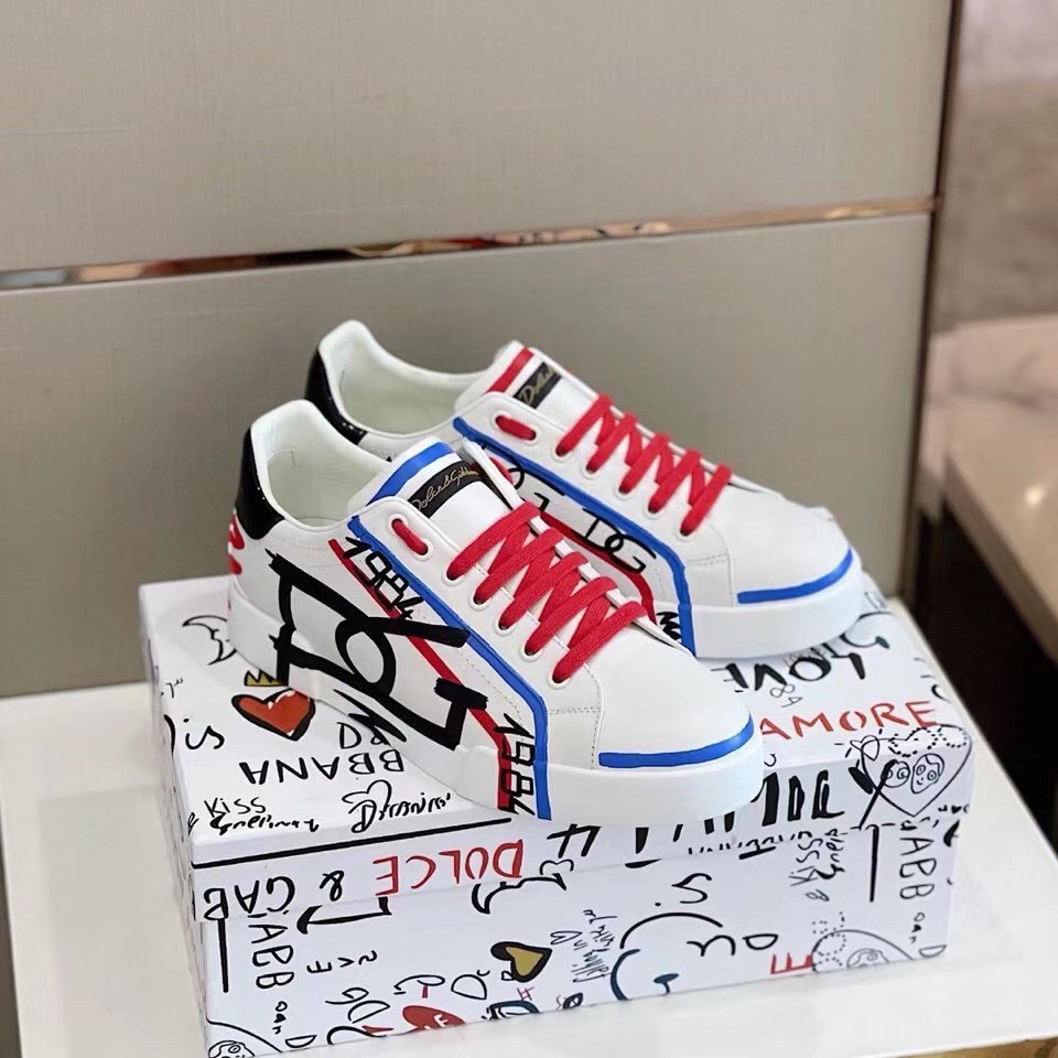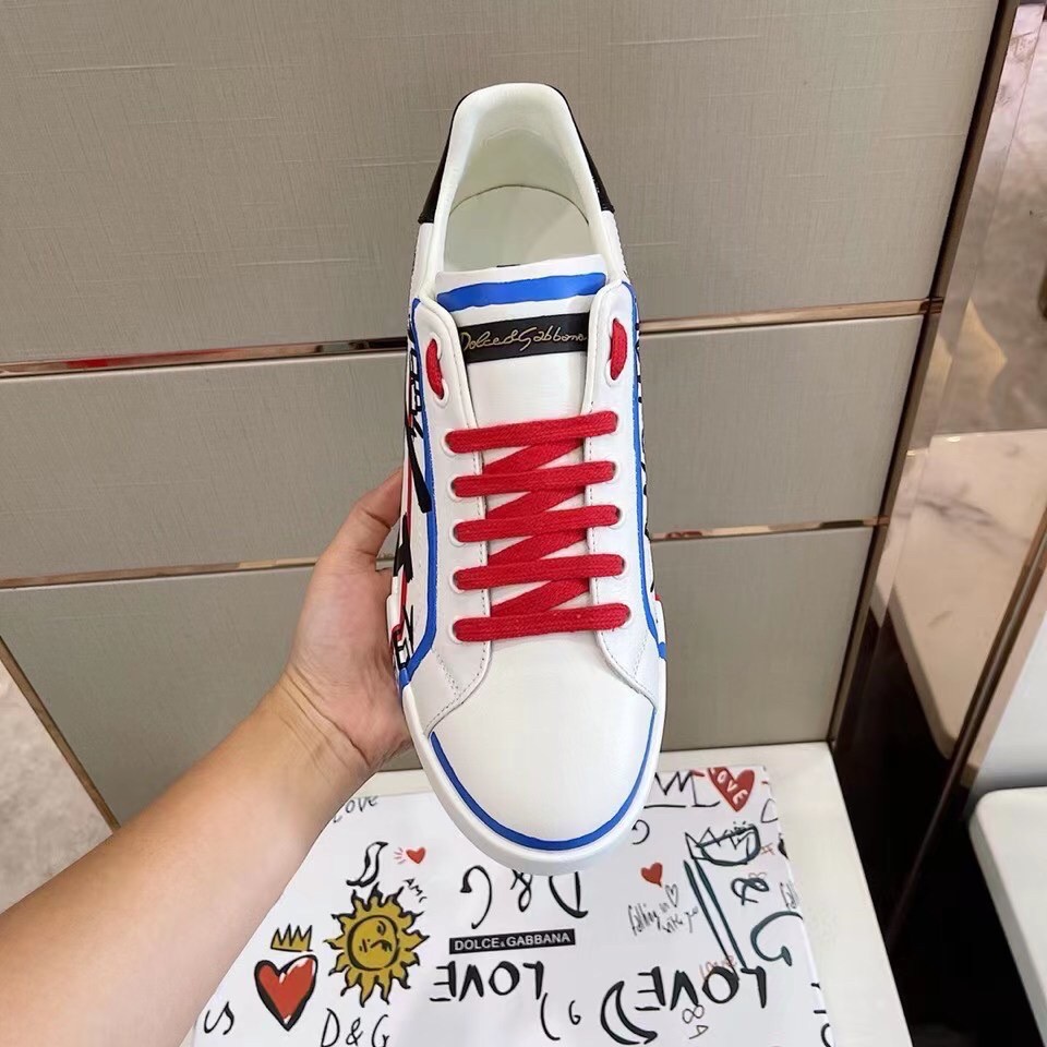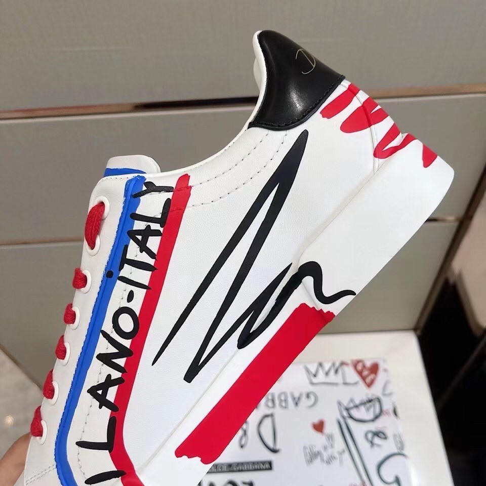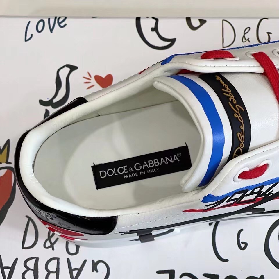 Dolce&Gabbana presents the collection of Limited Edition sneakers for Him and for Her, decorated with unique designs in black, blue and red printed , that are hand painted by our artisans.