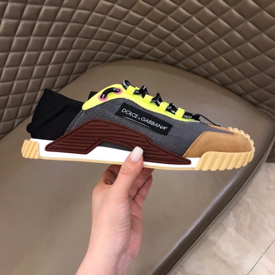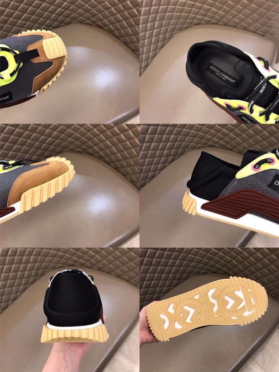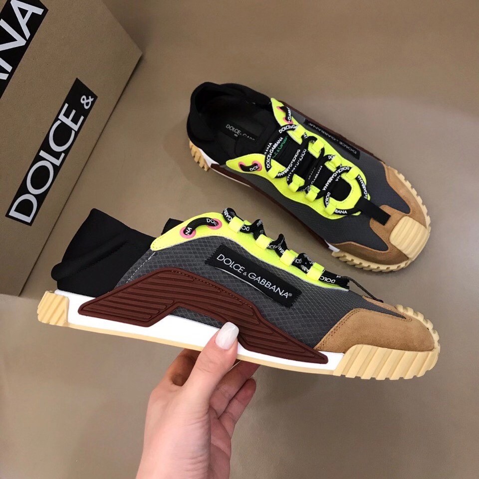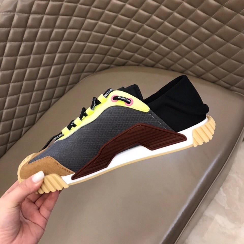 Marking a new chapter in the evolution of the brand’s revered Sorrento style, Dolce & Gabbana presents the subtly reimagining of the street-ready style: the NS1 sneakers. An upper consisting of elastane, mesh and suede is paired with a with a super-flex rubber sole to create a daring fusion of geometrical shapes and textures – note the slip-on fastening for a further dimension of maximalist sophistication.