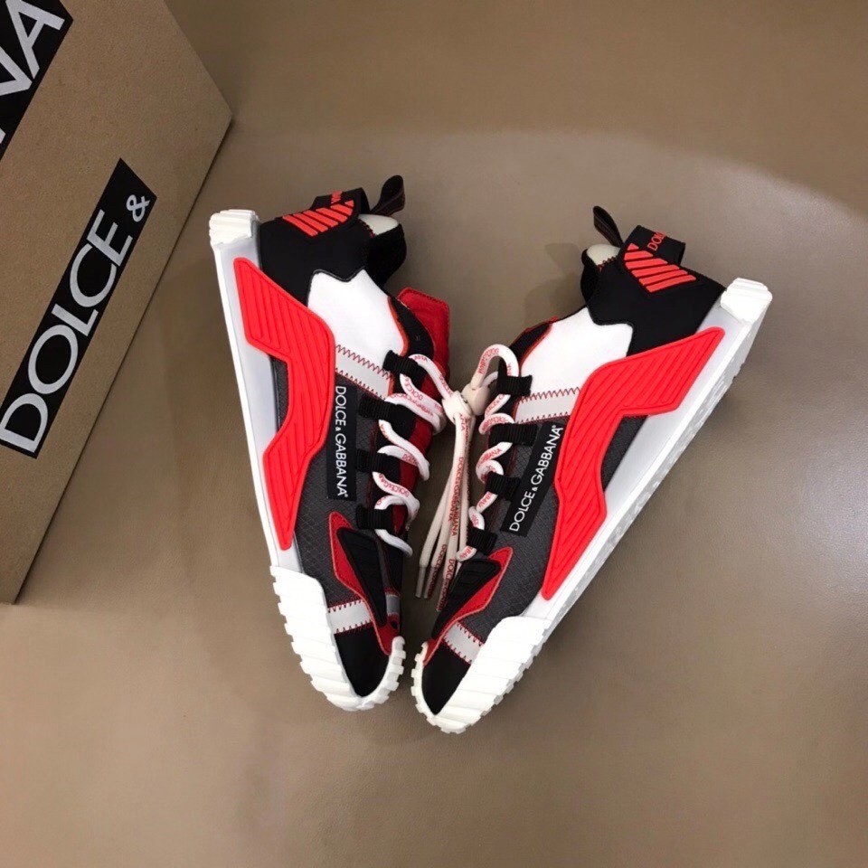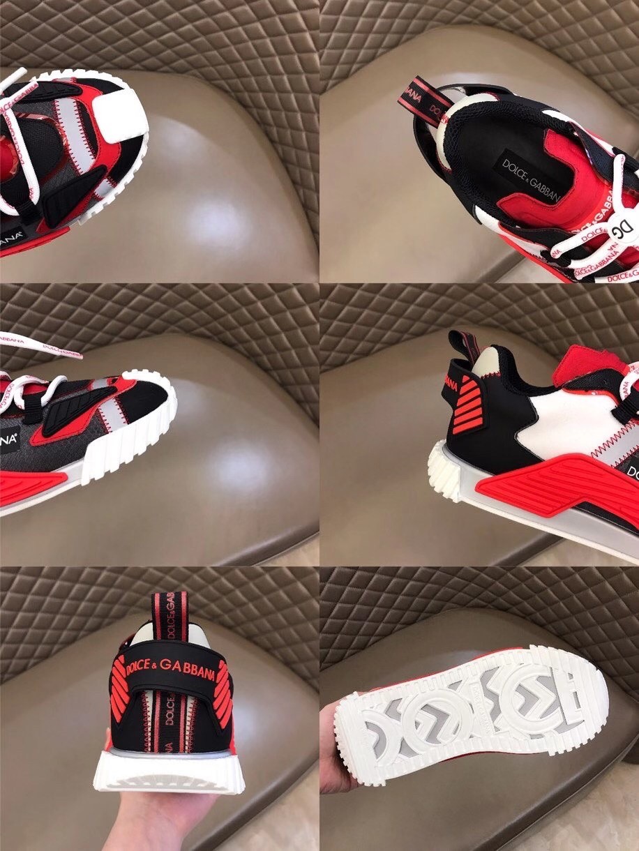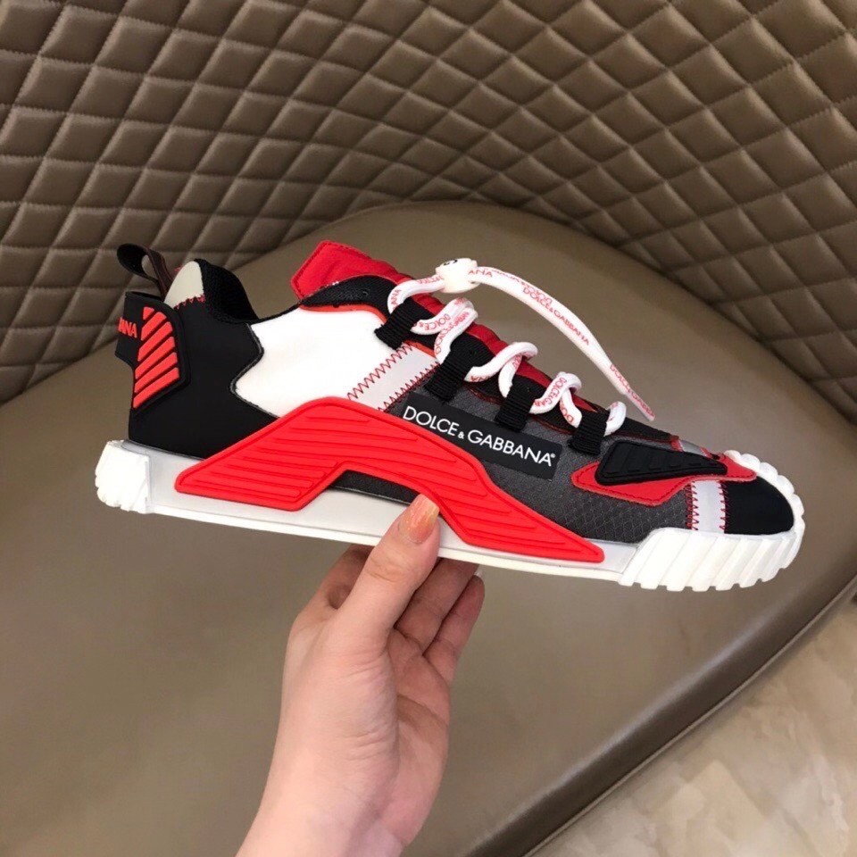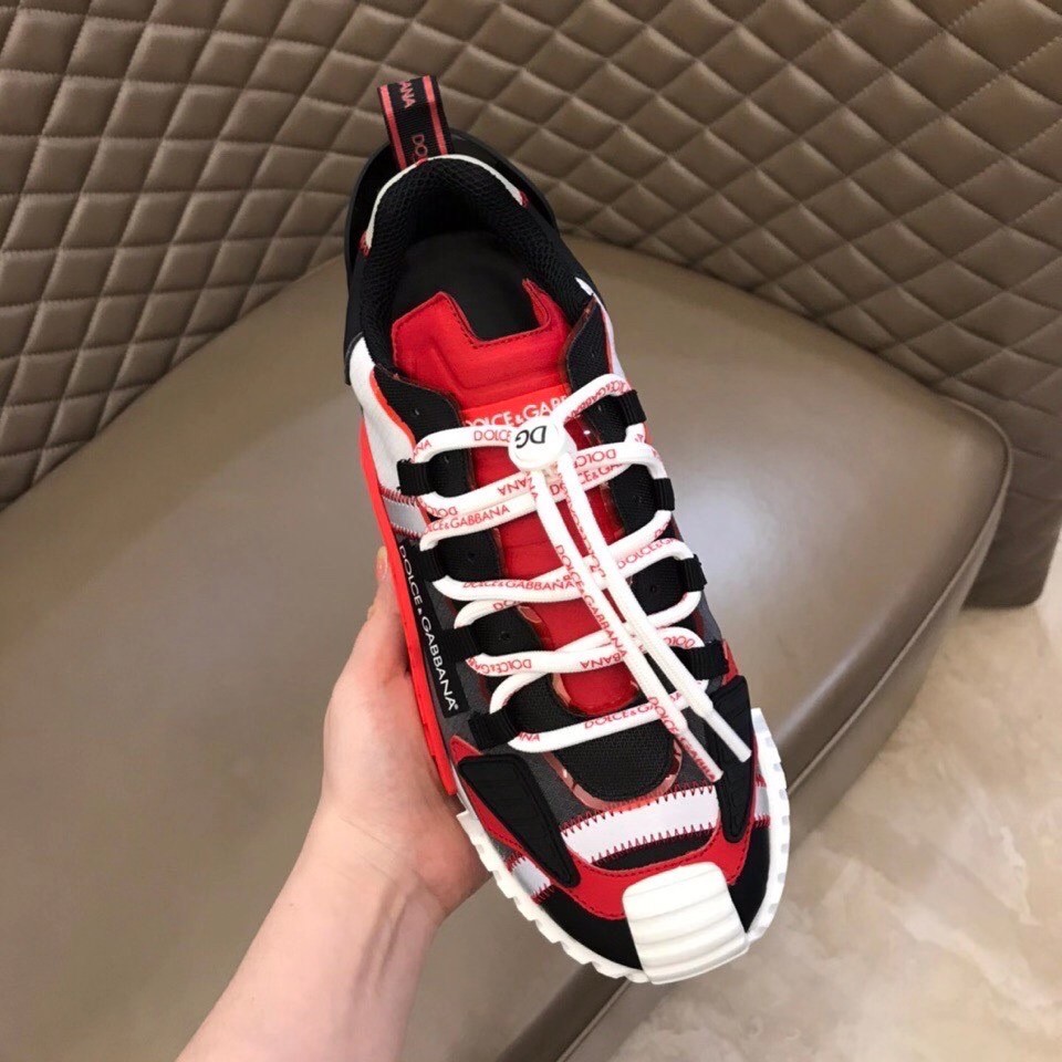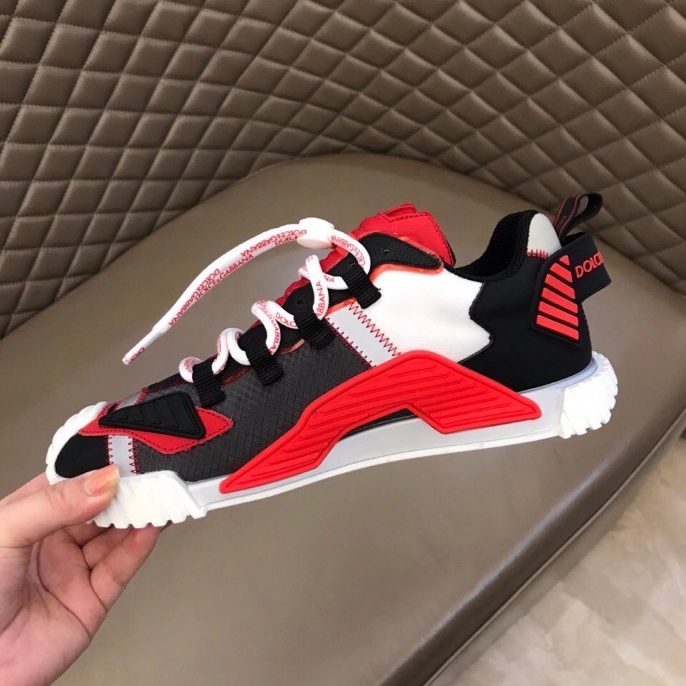 Presented as the evolution of Dolce & Gabbana’s iconic Sorrento style, these NS1 sneakers come in technical fabric. They feature a super-flex rubber sole, tongue in run-resistant, thermoformed fabric created using a high-frequency technique and ornamental technical details on the upper.