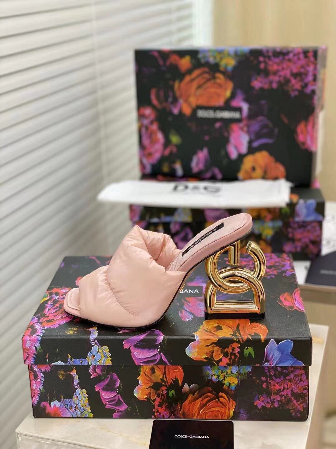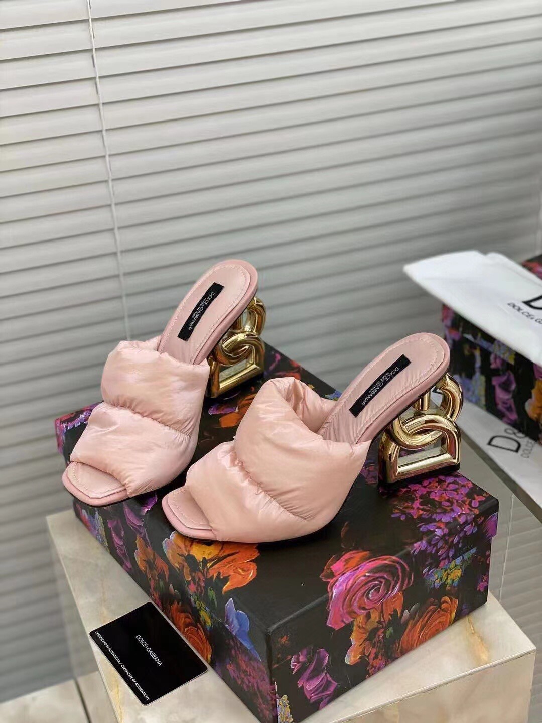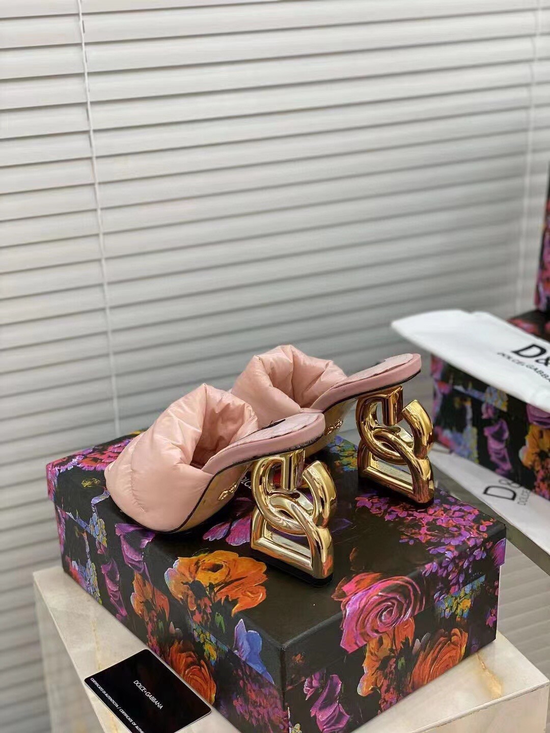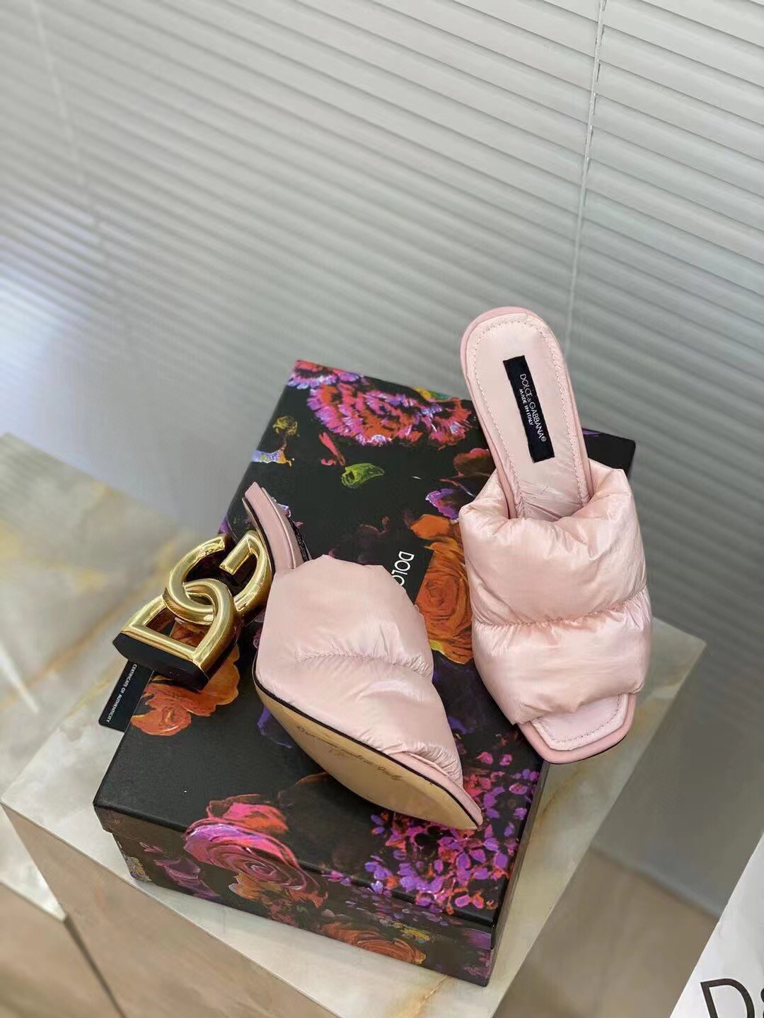 Dolce & Gabbana Pink Down-padded Mules with DG Pop Heel