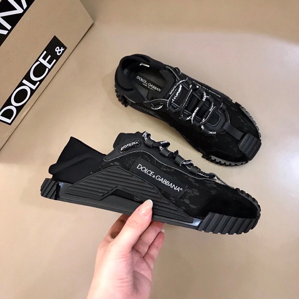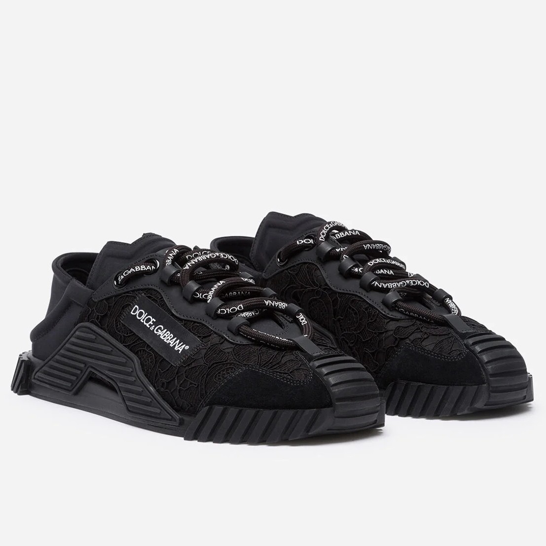 These black NS1 sneakers from Dolce & Gabbana infuse a typical sportswear silhouette with femininity. Made from lace uppers, they’re trimmed with futuristic ridged rubber and cushioning knit detailing at the tongues and heel counters. They’re finished with logo detailing for unmissable recognition.