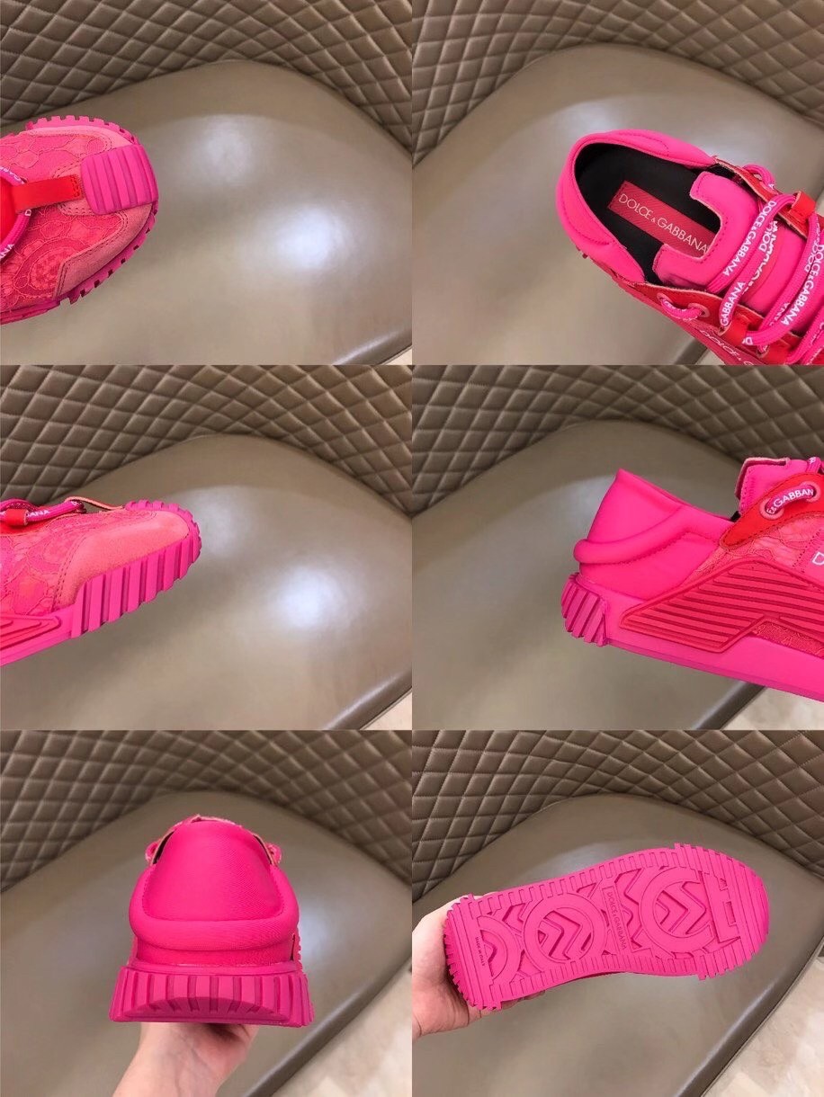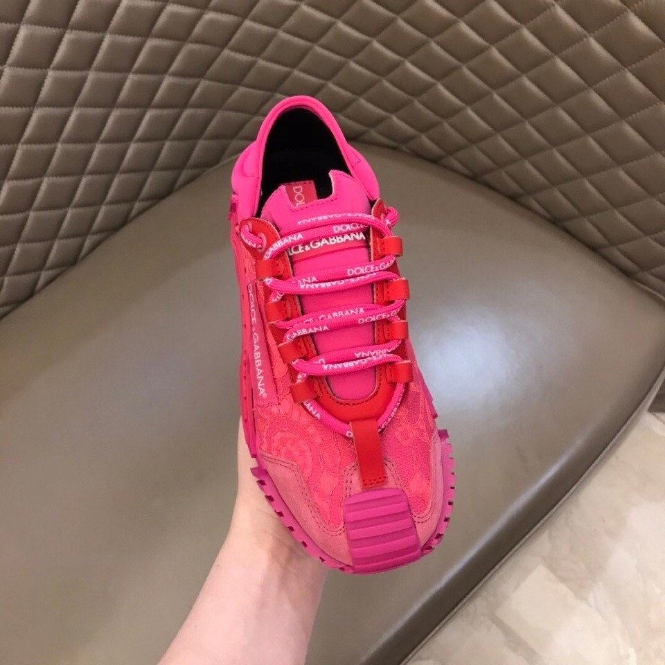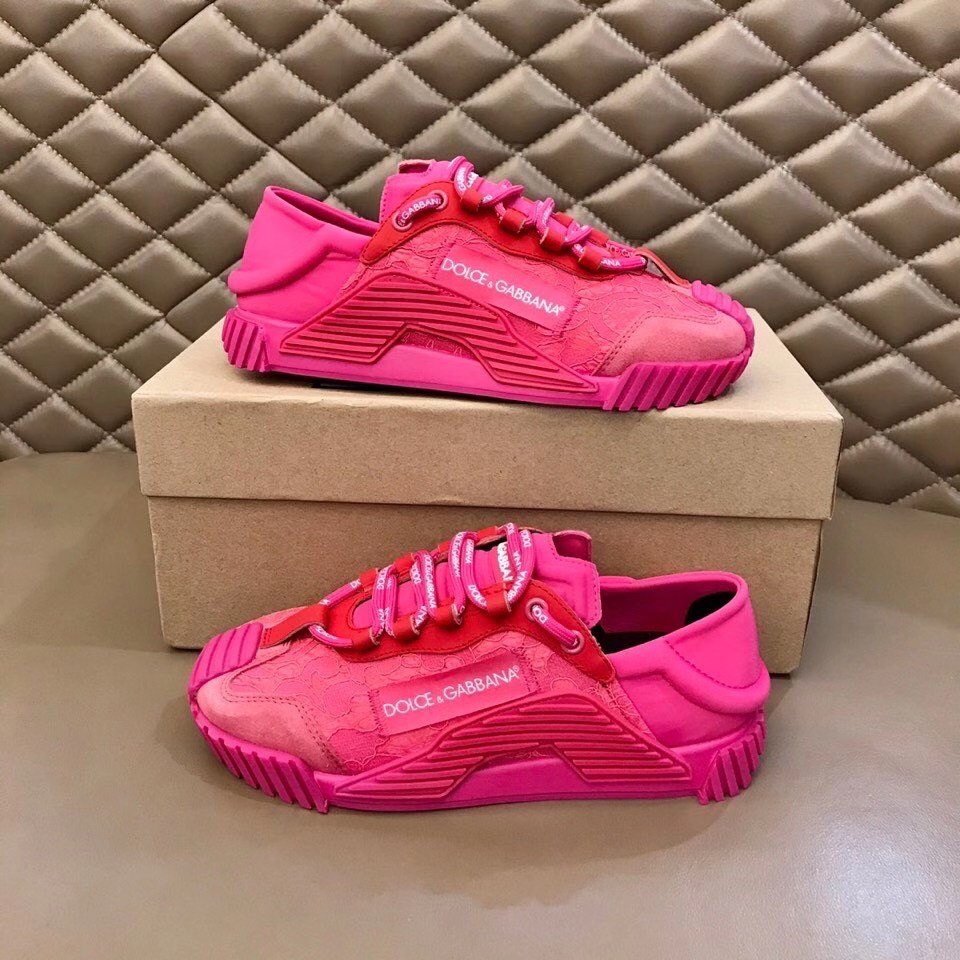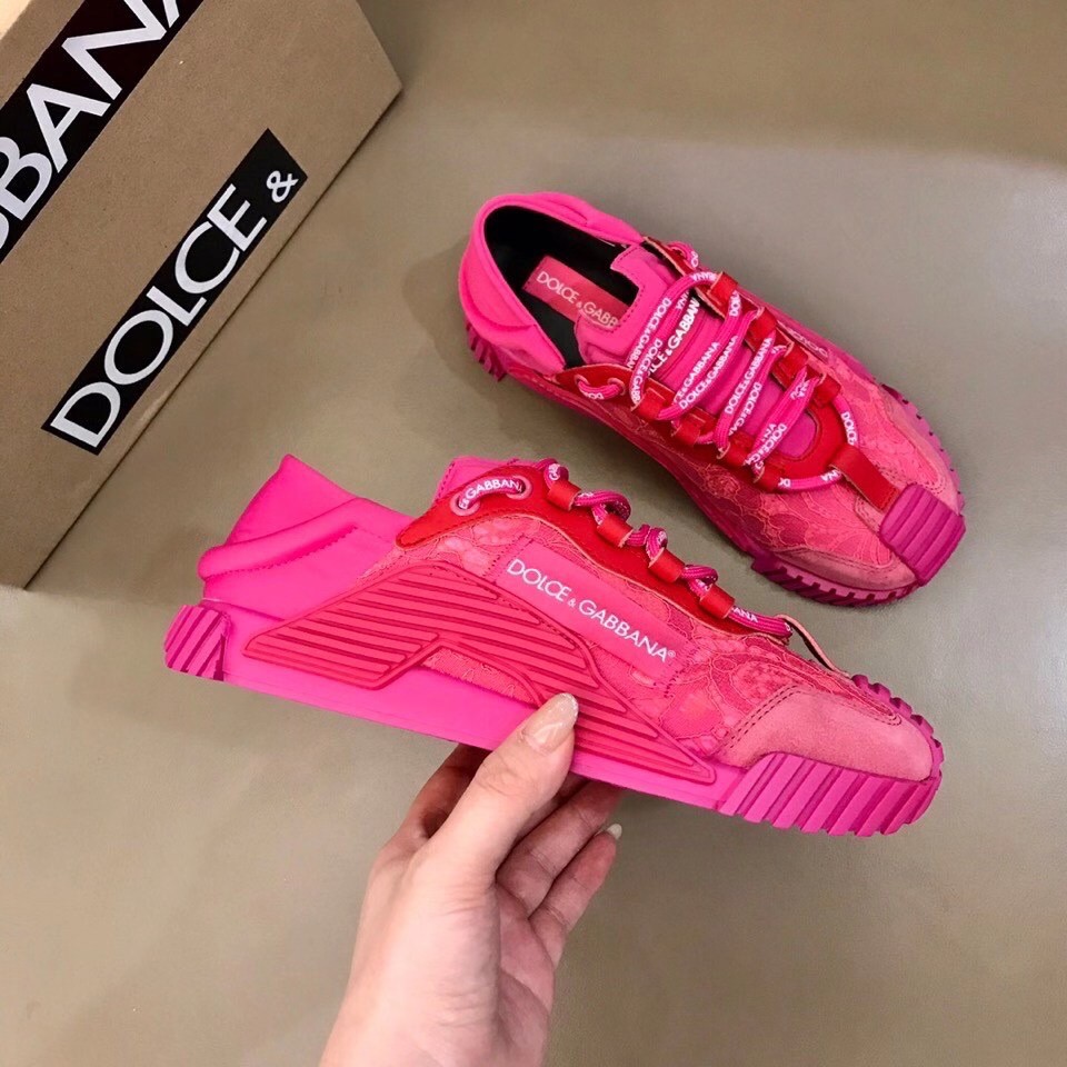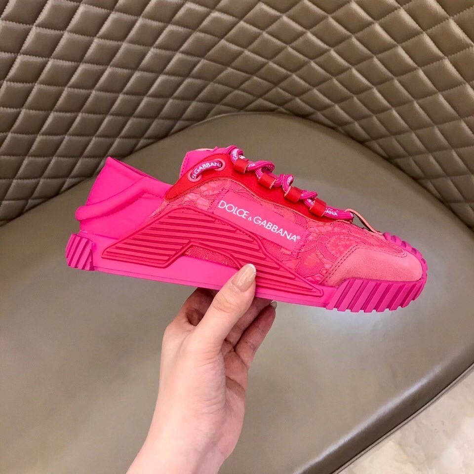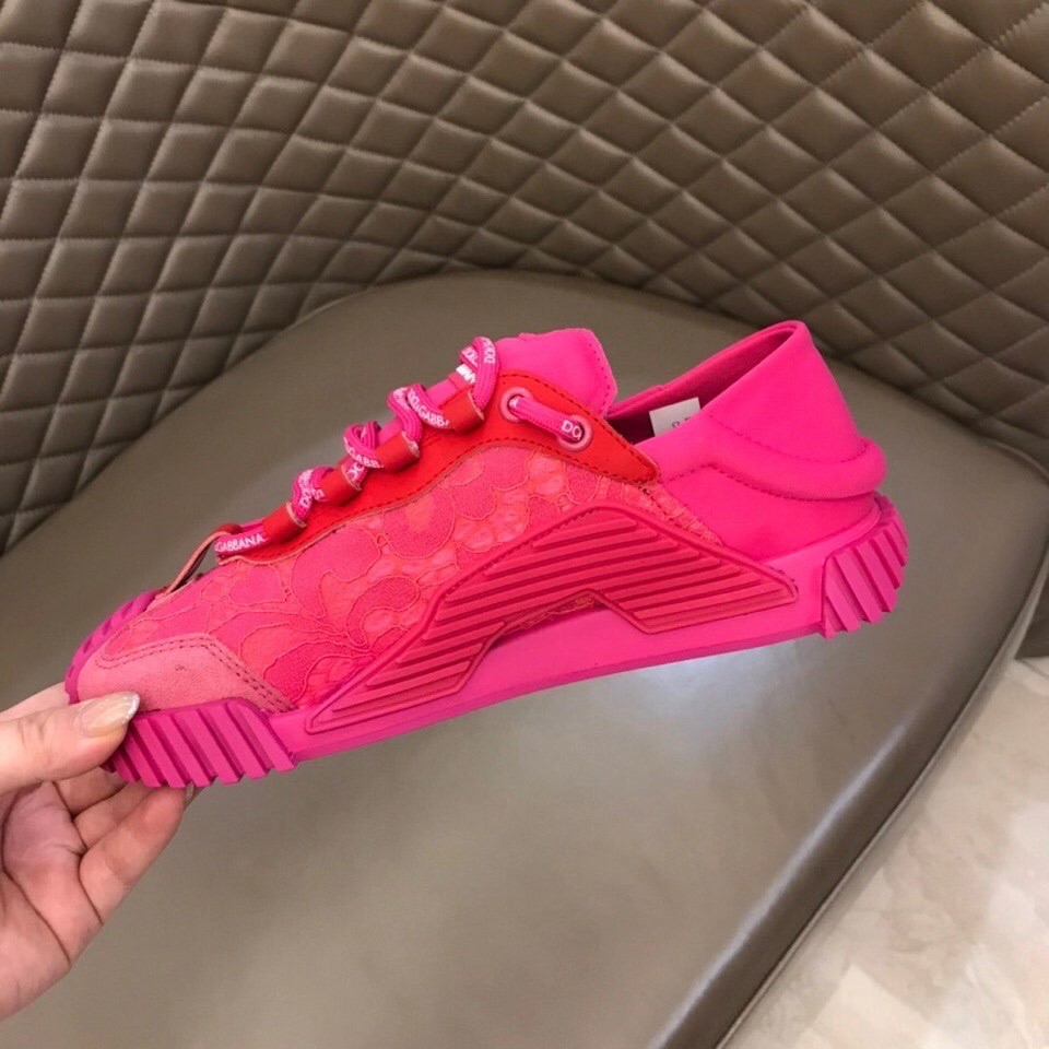 These fuchsia NS1 sneakers from Dolce & Gabbana infuse a typical sportswear silhouette with femininity. Made from lace uppers, they’re trimmed with futuristic ridged rubber and cushioning knit detailing at the tongues and heel counters. They’re finished with logo detailing for unmissable recognition.