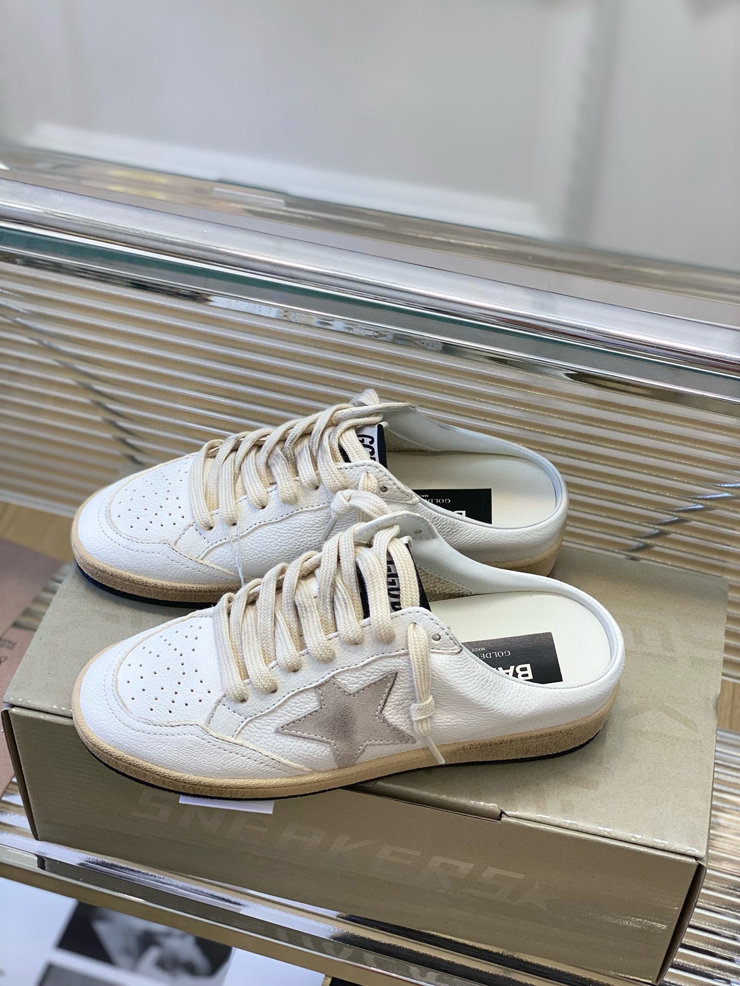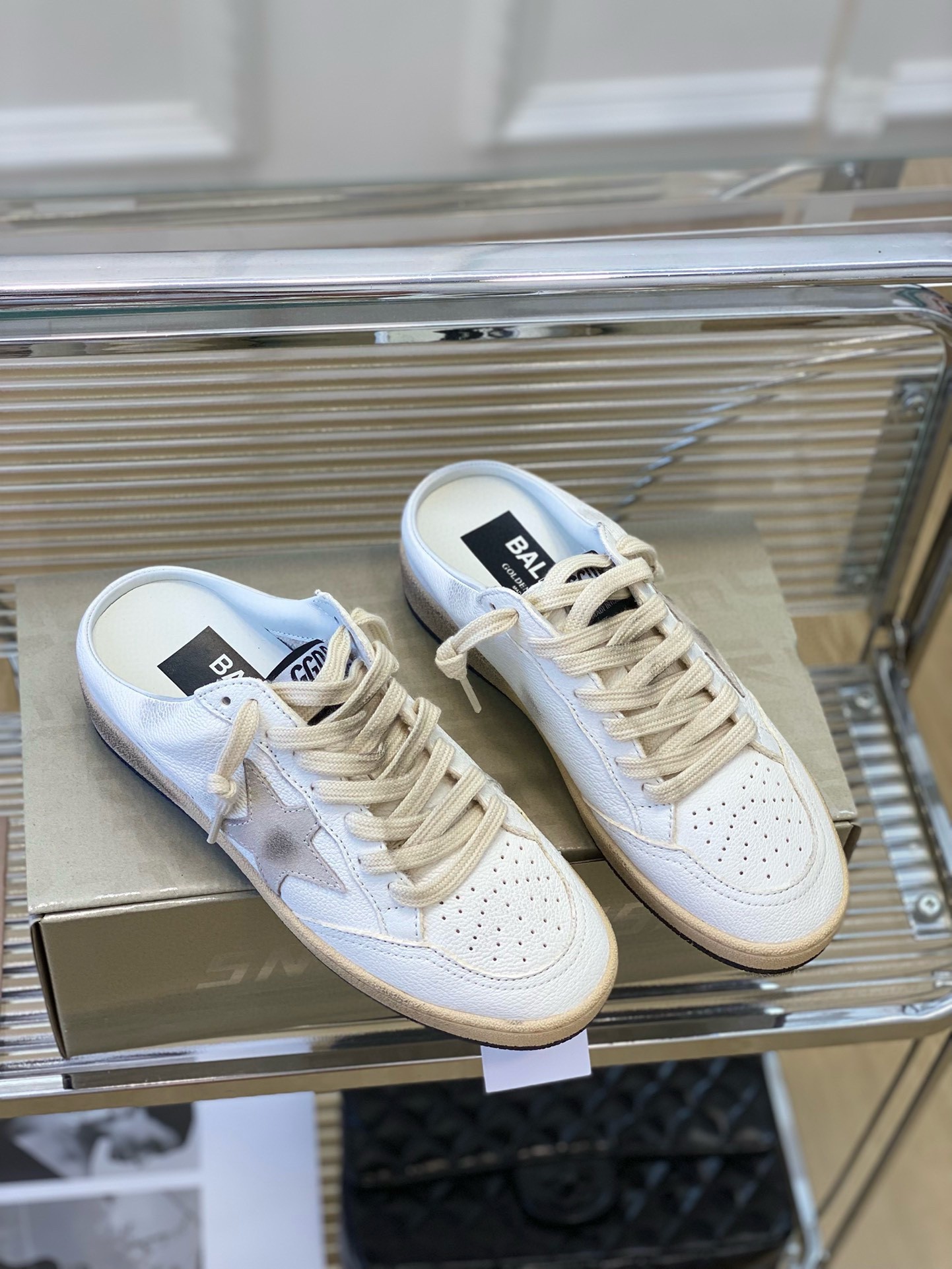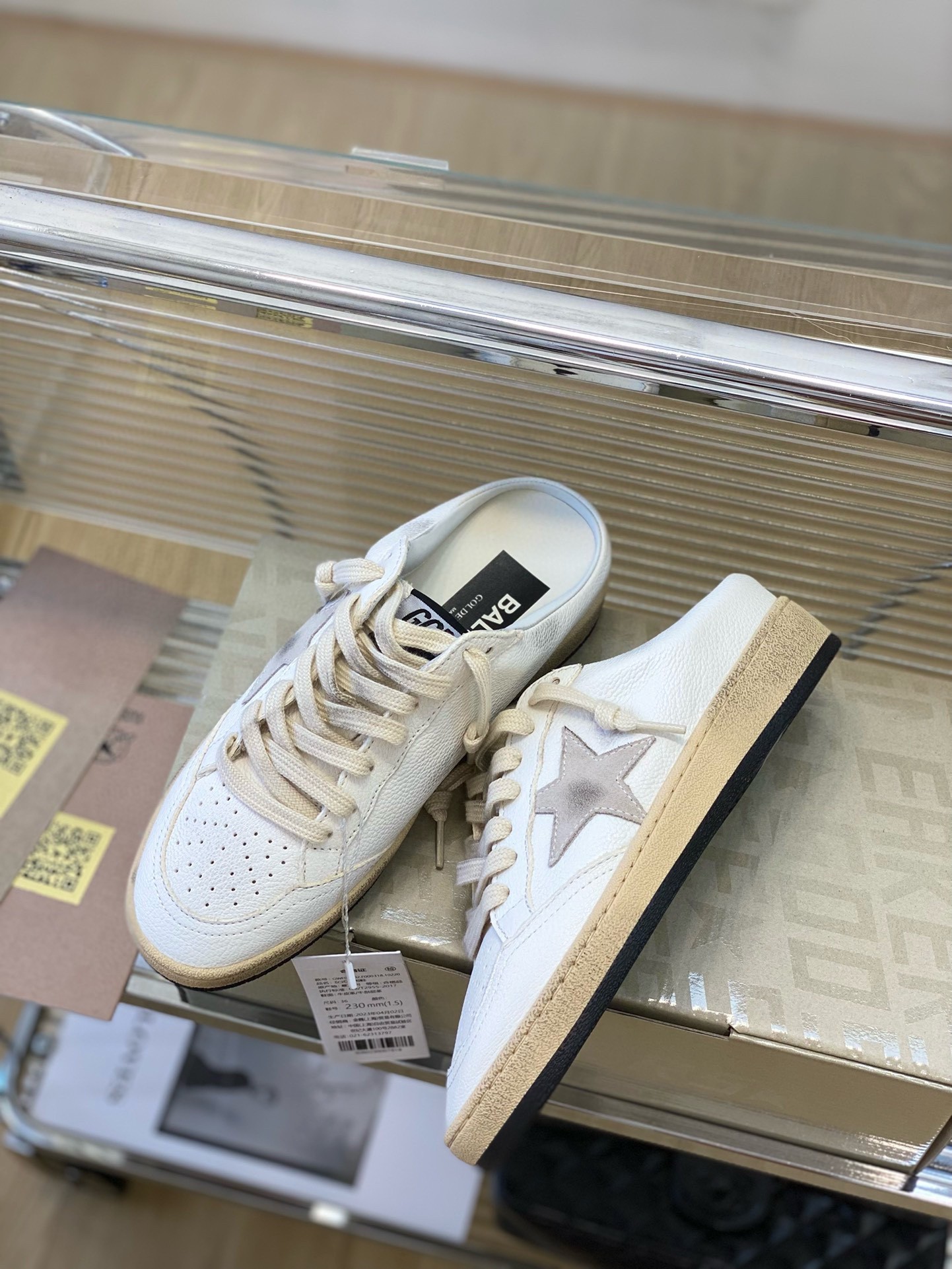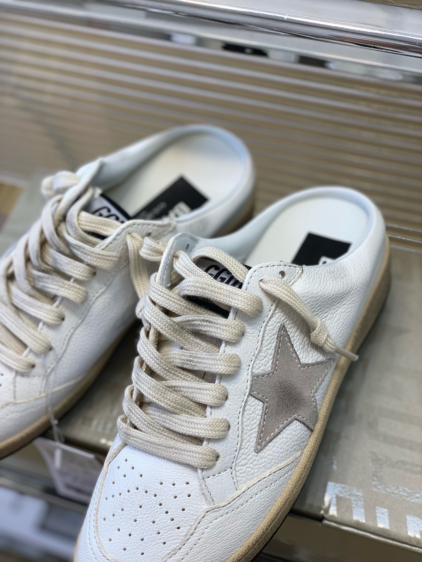 Dreaming of the Eighties. Our Ball Star sneakers have an American college vibe caught between a hoop shot and a skateboard ride. The sabot version of this model with a white nappa leather upper features an ice-gray suede star. A black sole and cream-colored laces add the finishing touch: beautiful things that never go out of fashion.