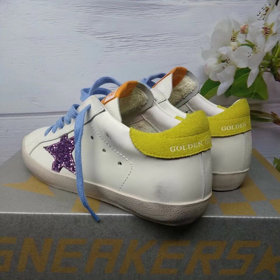 Premium quality and impeccably designed details are the features that make all our sneakers special: this classic model is updated in glamorous style thanks to the star with fuchsia glitter and yellow suede rear.