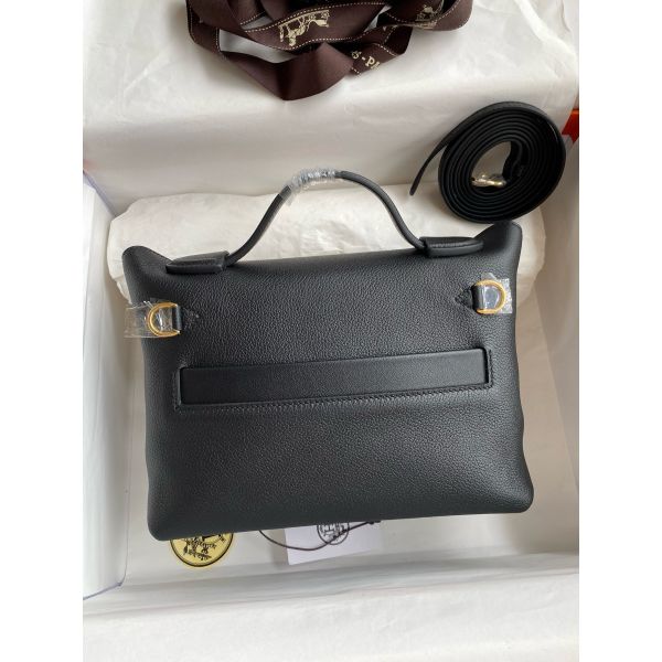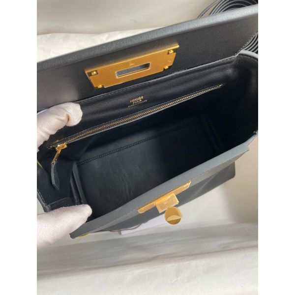 Hermes 24/24 Mini 21 Handmade Bag in Black Evercolor Leather