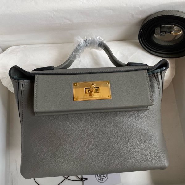 Hermes 24/24 Mini 21 Handmade Bag in Gris Meyer Evercolor Leather