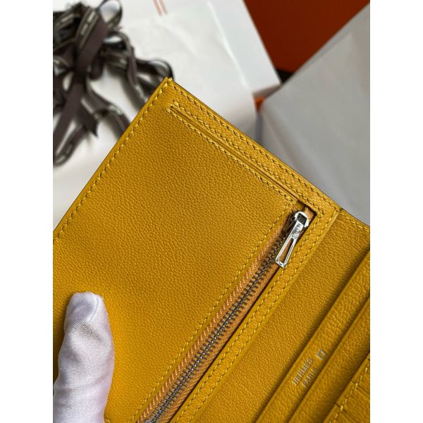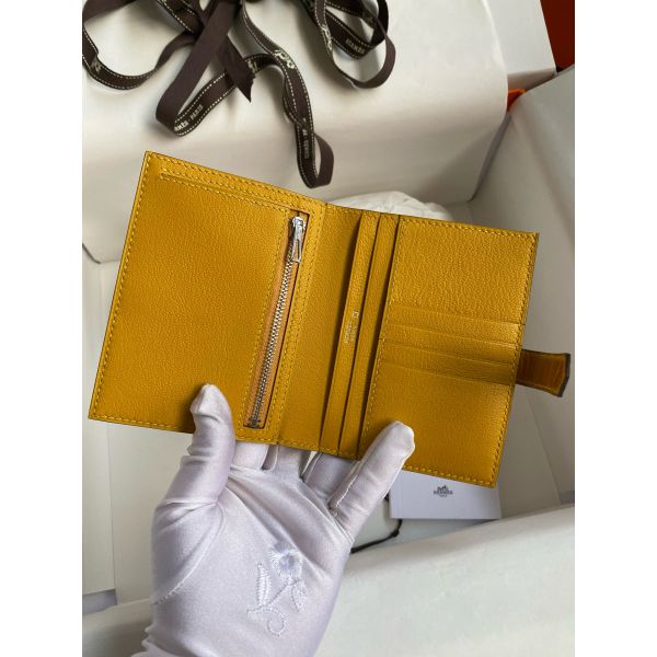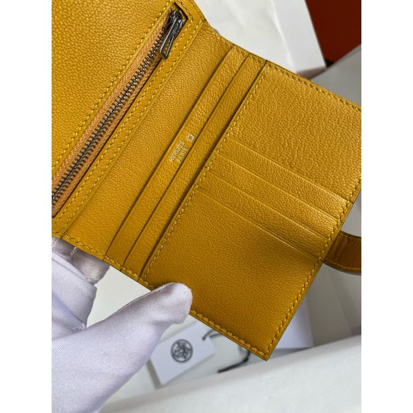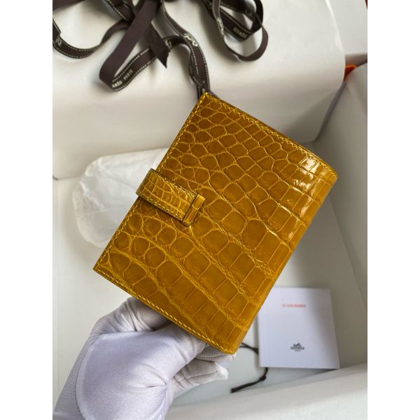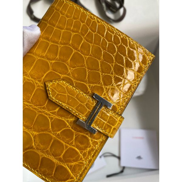 Hermes Bearn Compact Wallet in Jaune Ambre Shiny Alligator Leather