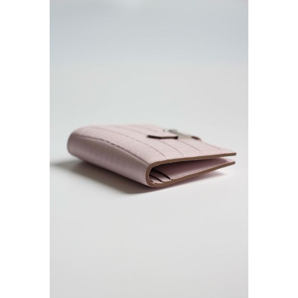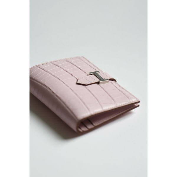Hermes Bearn Compact Wallet in Mauve Pale Matte Alligator Leather