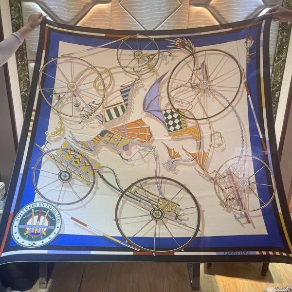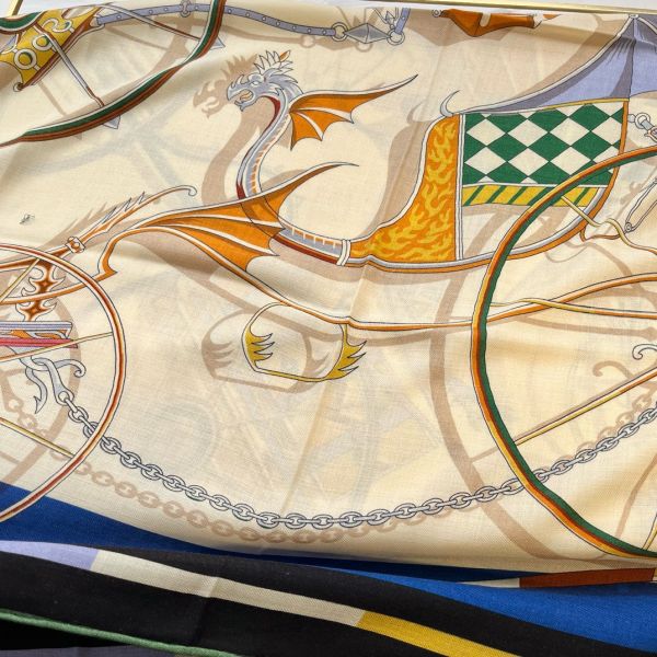 Hermes Beige/Blue Voitures en Equilibre Shawl 140