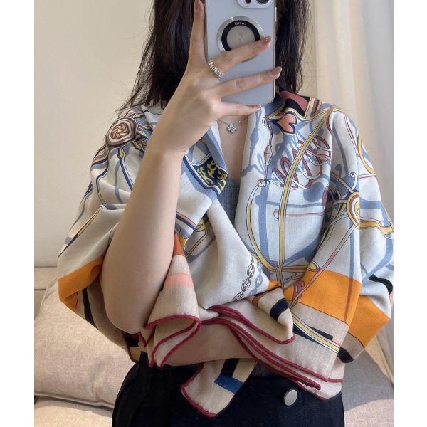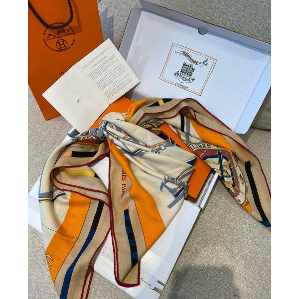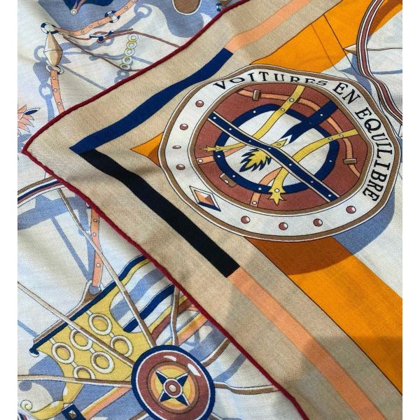 Hermes Beige/Orange Voitures en Equilibre Shawl 140