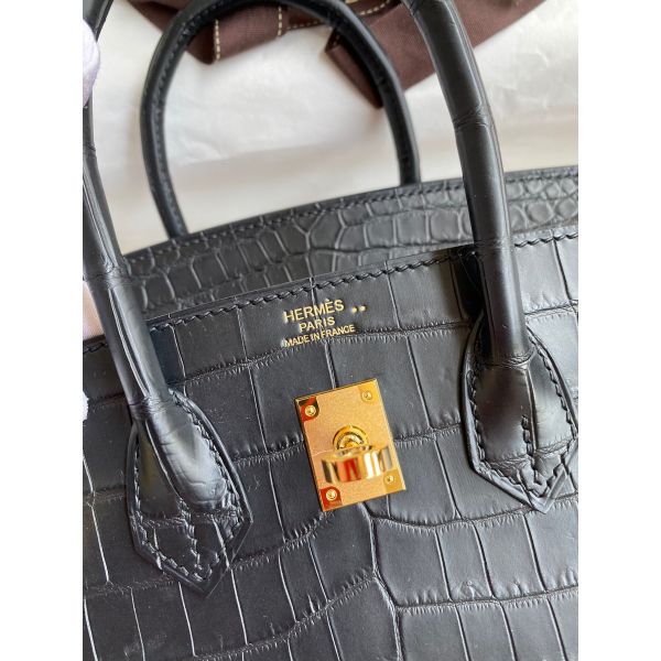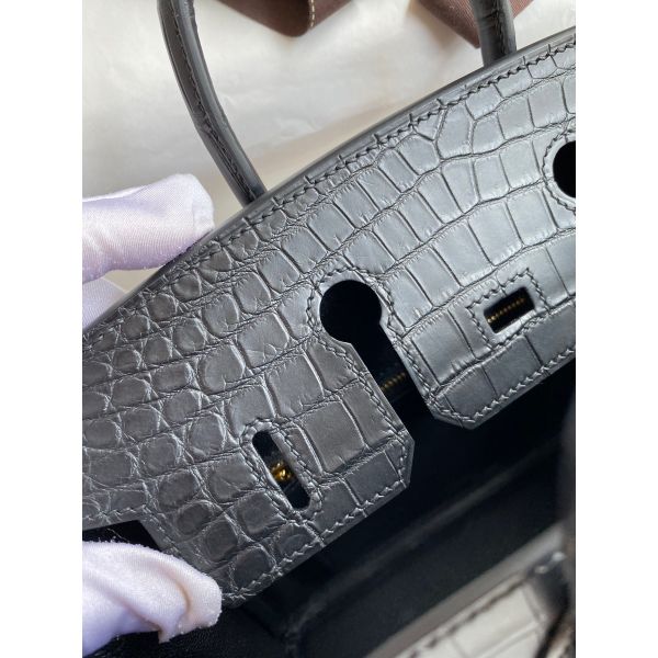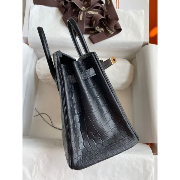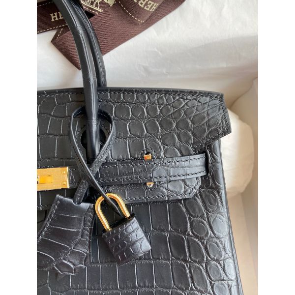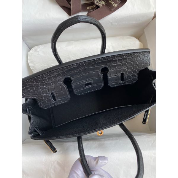 Hermes Birkin 25 Handmade Bag In Black Crocodile Niloticus Matte Skin