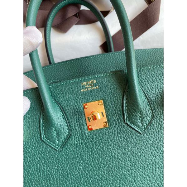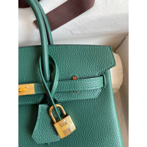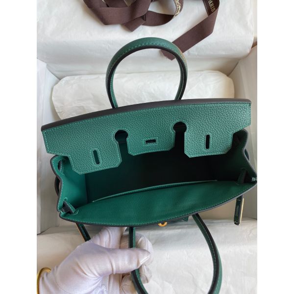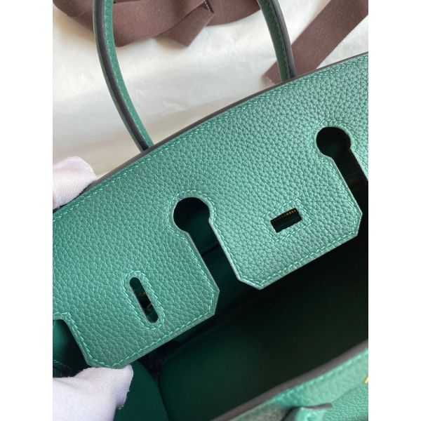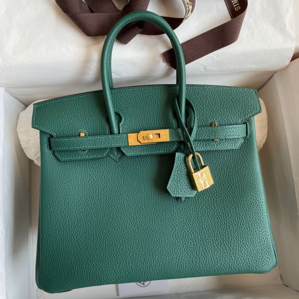 Hermes Birkin 25 Handmade Bag In Malachite Clemence Leather