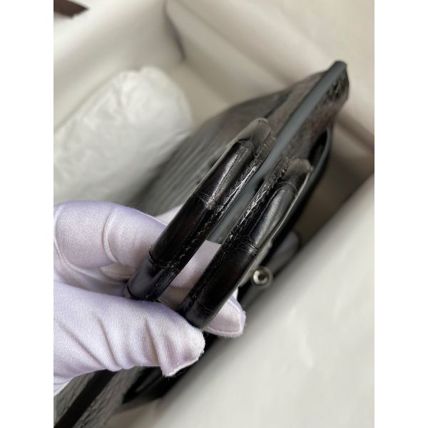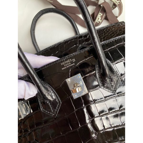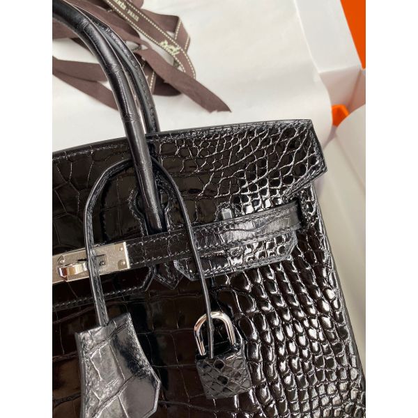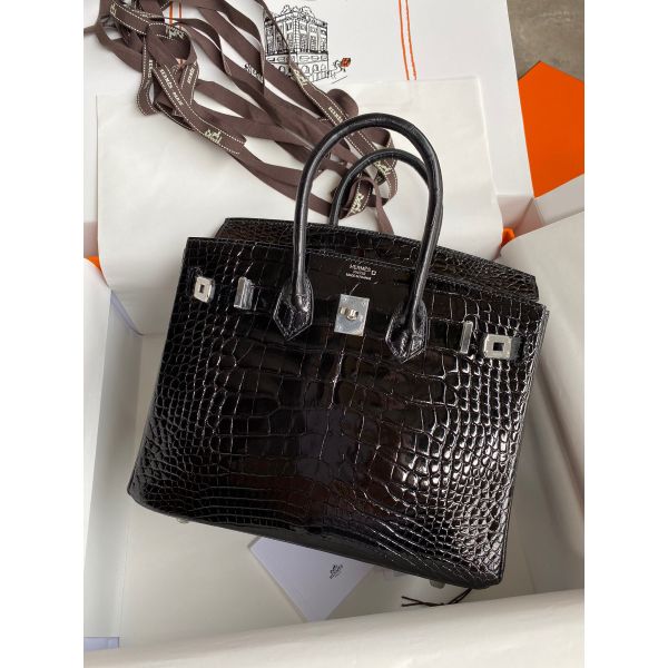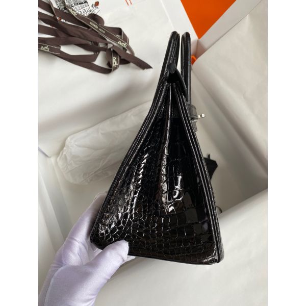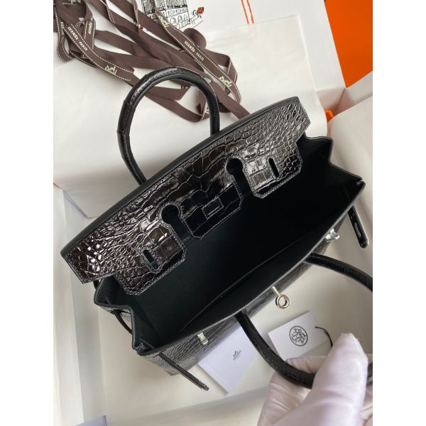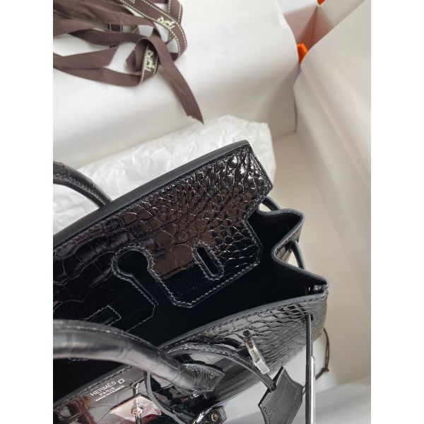 Hermes Birkin 25 Retourne Handmade Bag In Black Shiny Alligator Leather