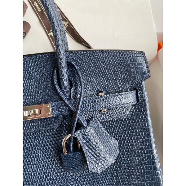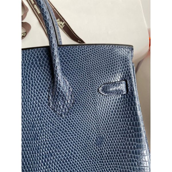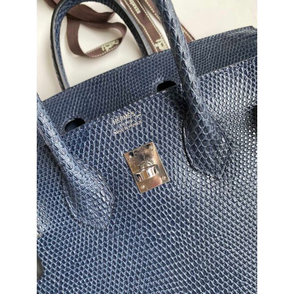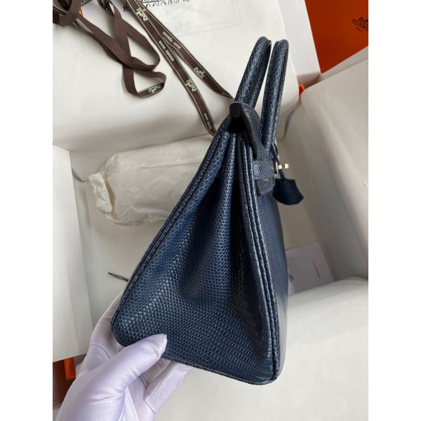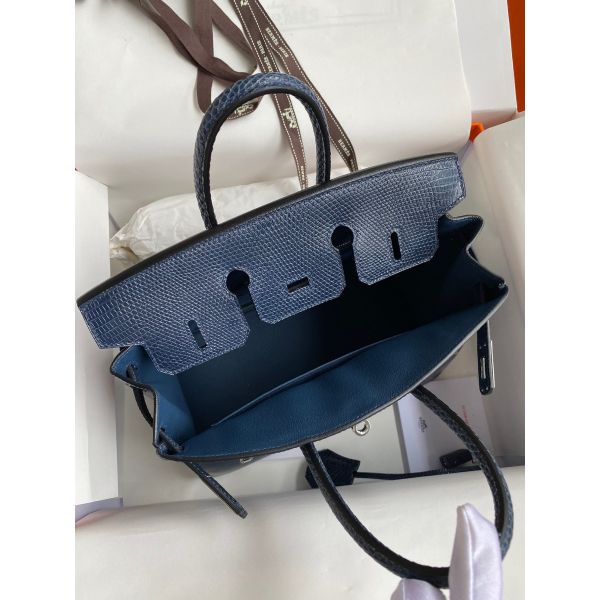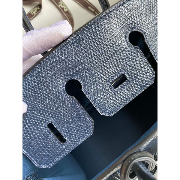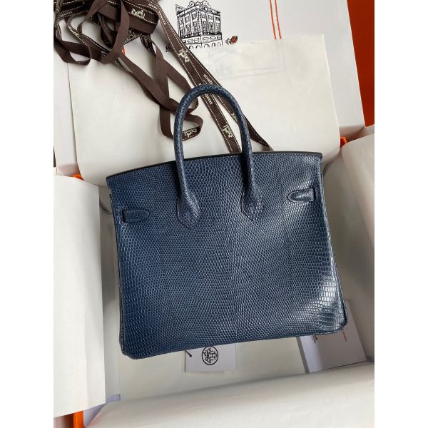 Hermes Birkin 25 Retourne Handmade Bag In Blue Saphir Lizard Leather