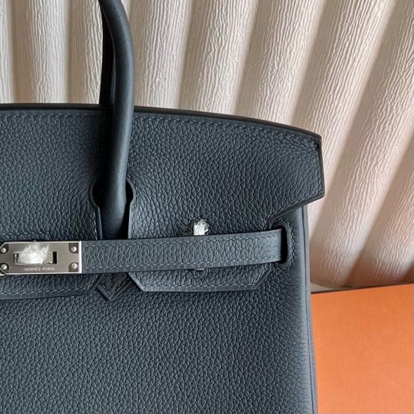 First adorned on the arm of the infamous Jane Birkin back in 1984, the Hermes Birkin Bag quickly soared to the top of the popularity charts, becoming one of the most sought after bags in the fashion industry. This Hermes Retourne style is created using taurillon Clemence leather, giving it a more casual look. The Hermès Birkin 25cm is an exquisite Hermès handbag ideal for carrying your essentials for the day and transitioning seamlessly into the evening.