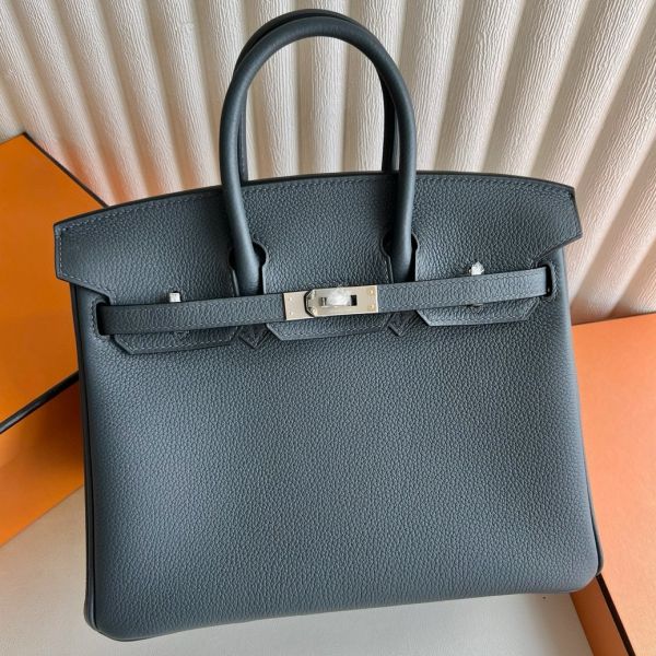Hermes Birkin 25 Retourne Handmade Bag in Gris Misty Clemence Leather
