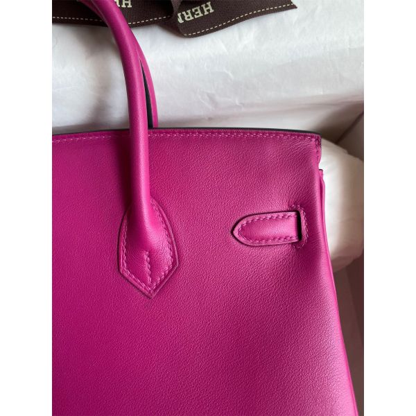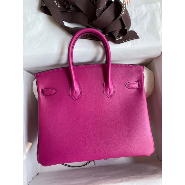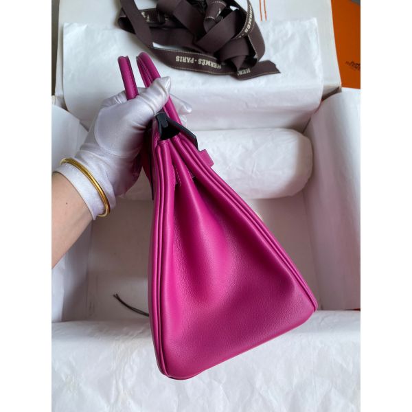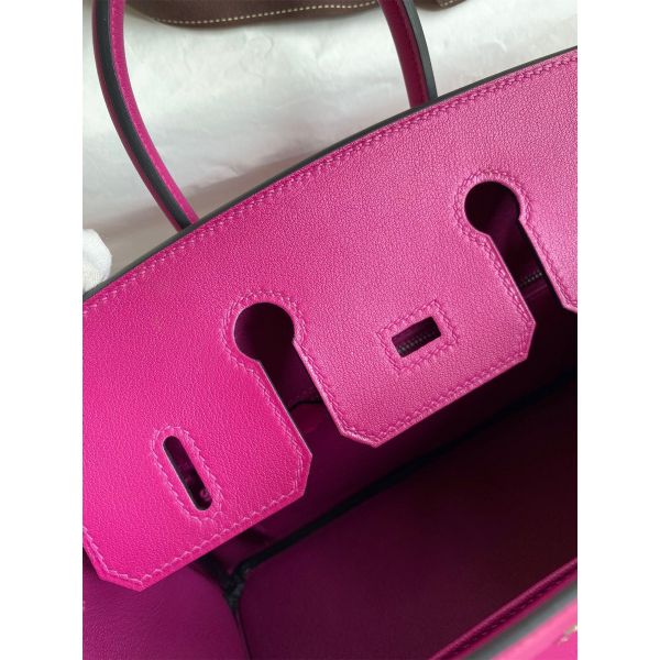 Hermes Birkin 25 Retourne Handmade Bag In Rose Purple Swift Calfskin