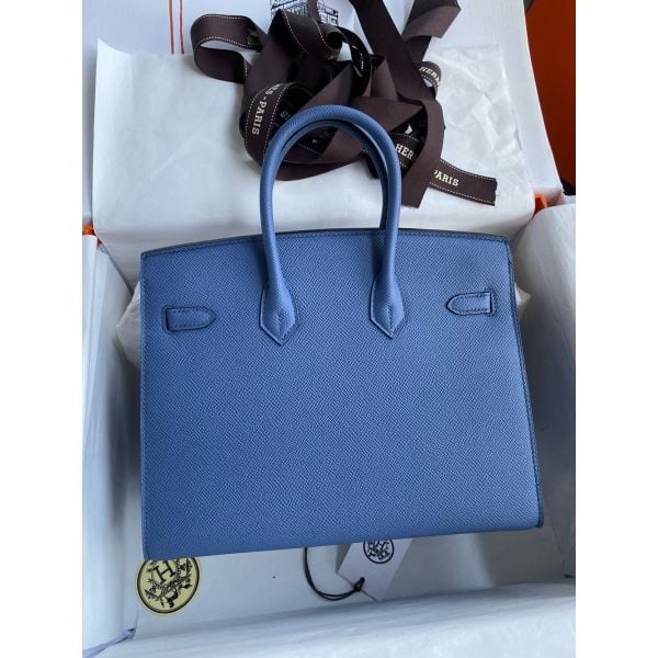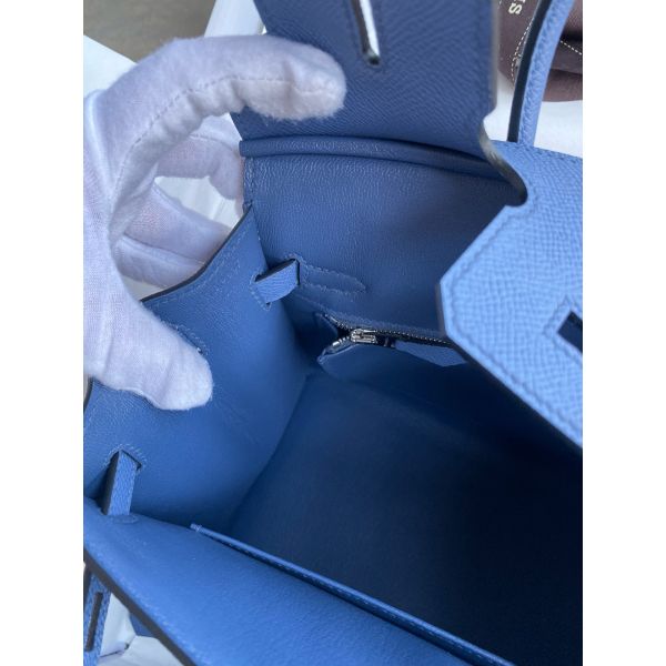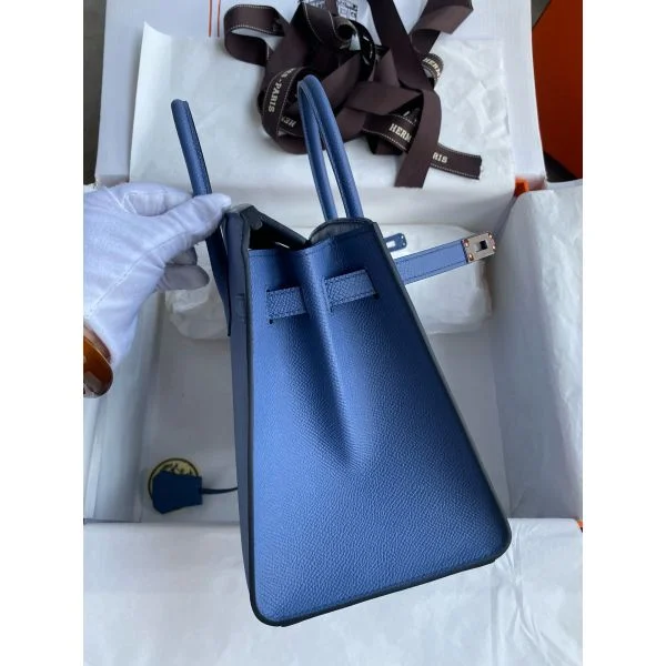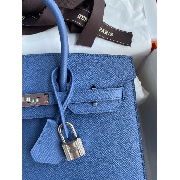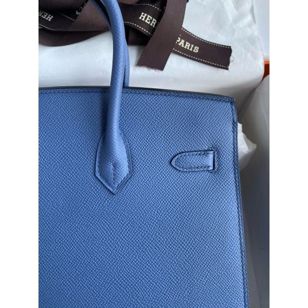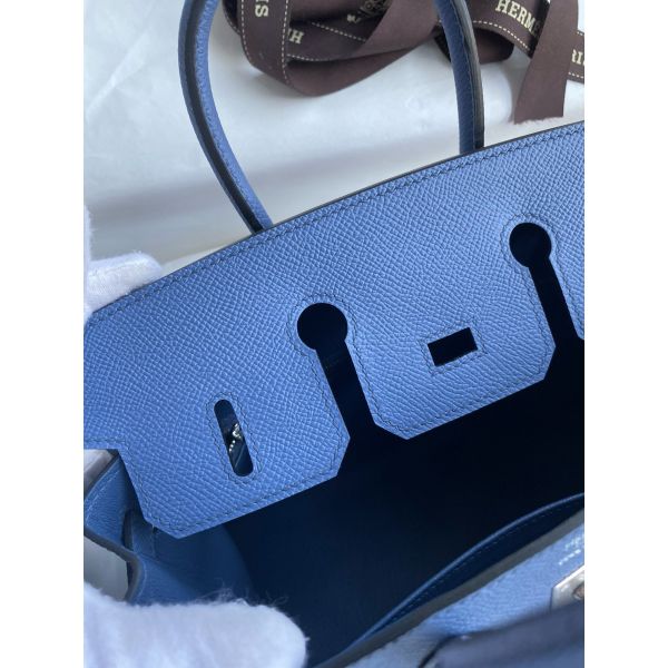 Hermes Birkin 25 Sellier Handmade Bag in Blue Brighton Epsom Calfskin