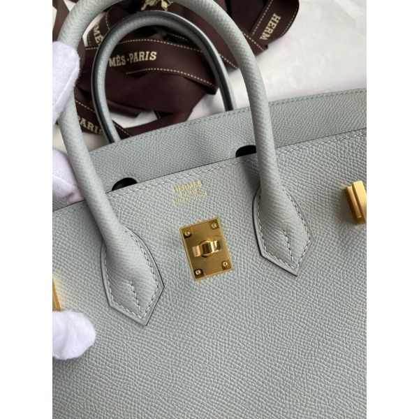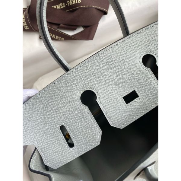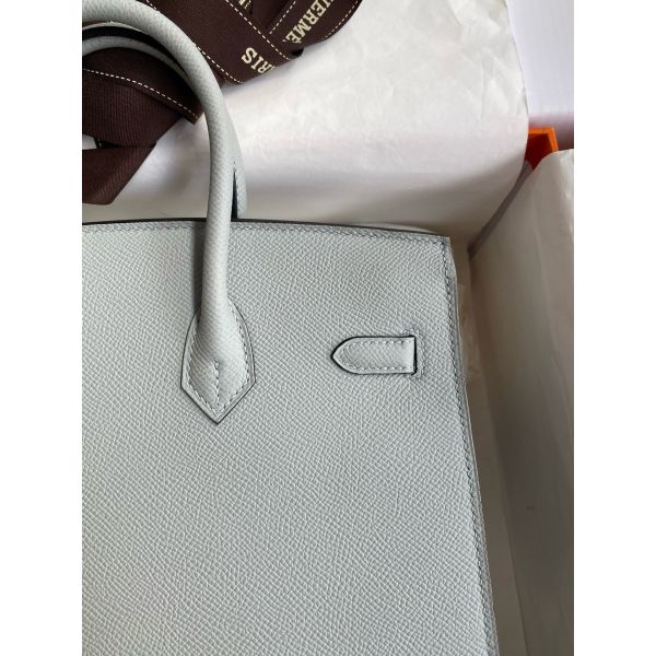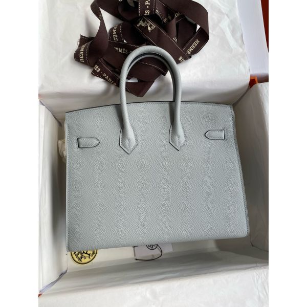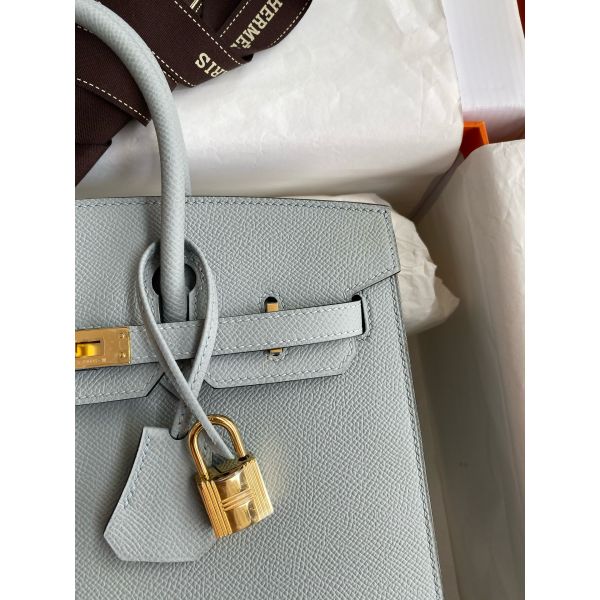 Hermes Birkin 25 Sellier Handmade Bag in Blue Glacier Epsom Calfskin