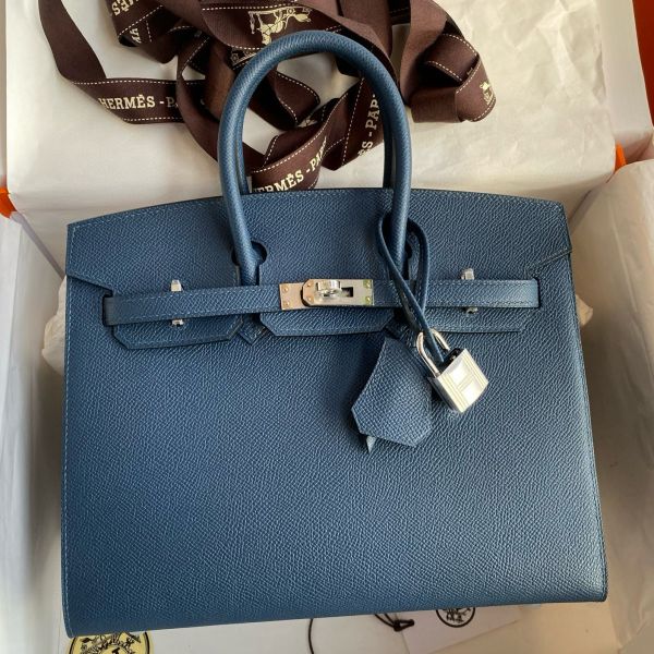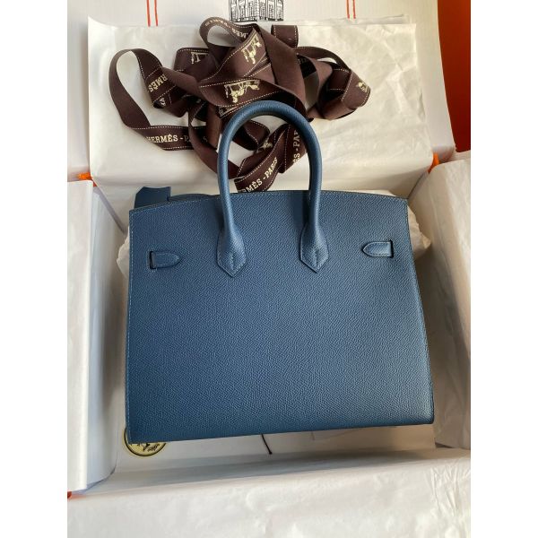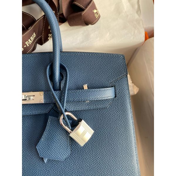 Hermes Birkin 25 Sellier Handmade Bag in Deep Blue Epsom Calfskin