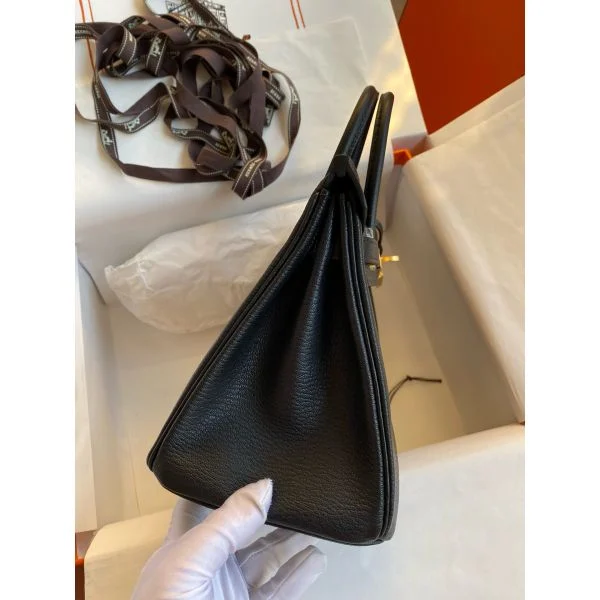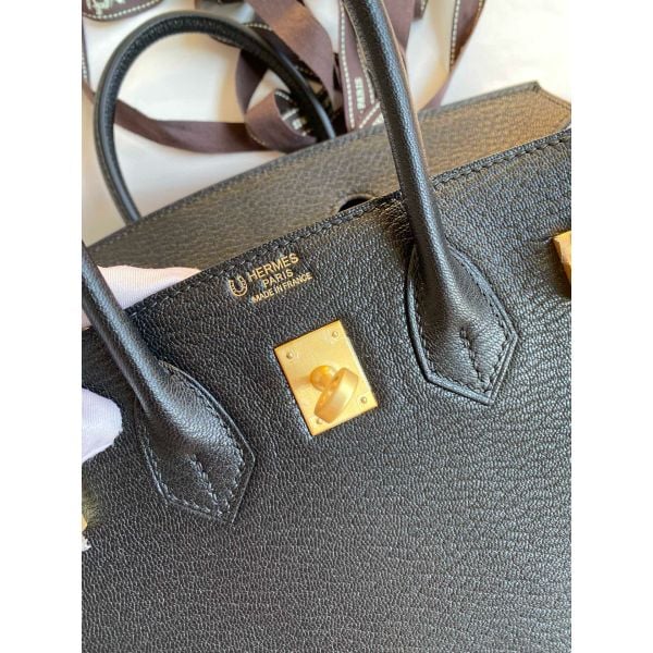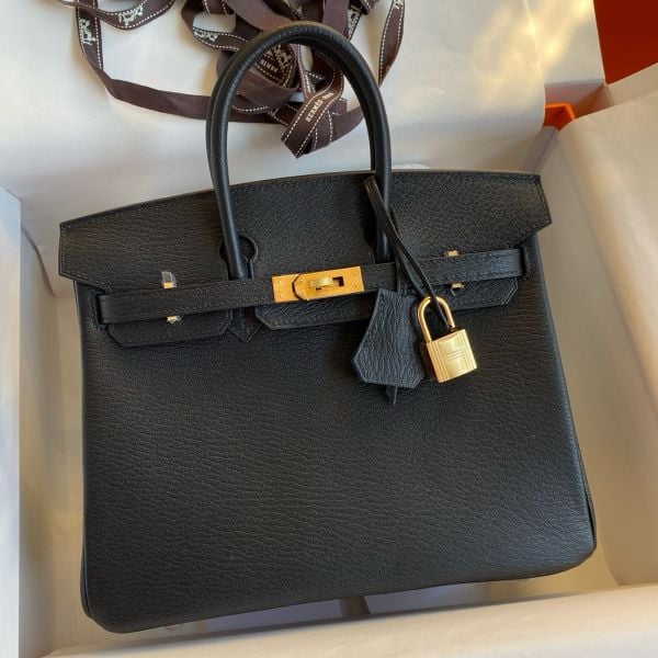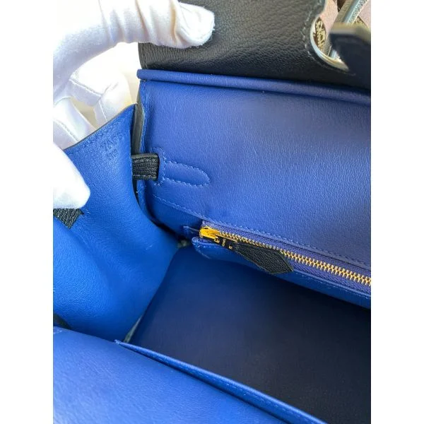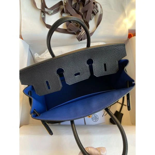 Hermes Birkin 25 Verso Retourne Handmade Bag in Noir Chevre Mysore Goatskin