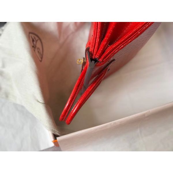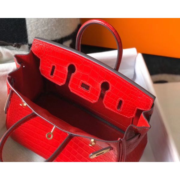 Hermes Birkin 25cm Bag In Red Embossed Crocodile Leather