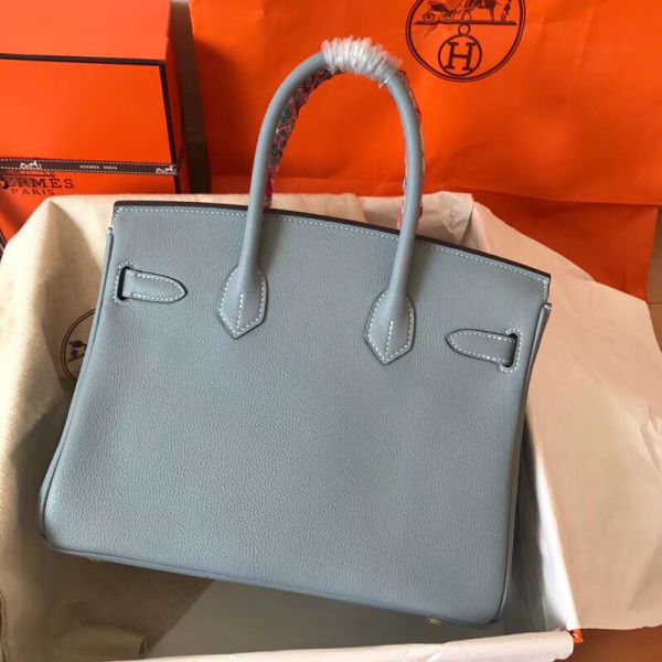 Hermes Birkin 30 Handmade Bag In Blue Lin Clemence Leather