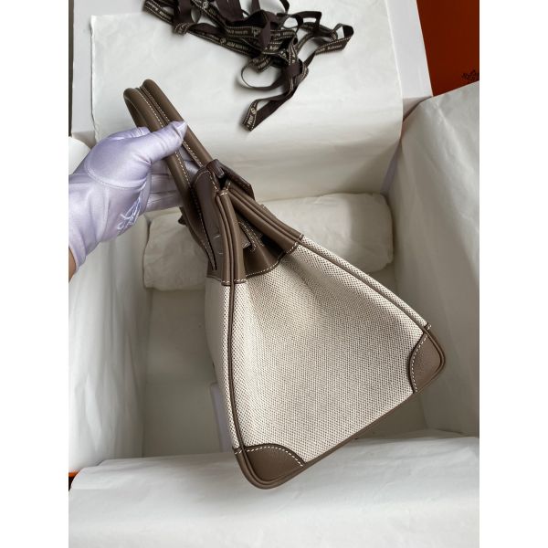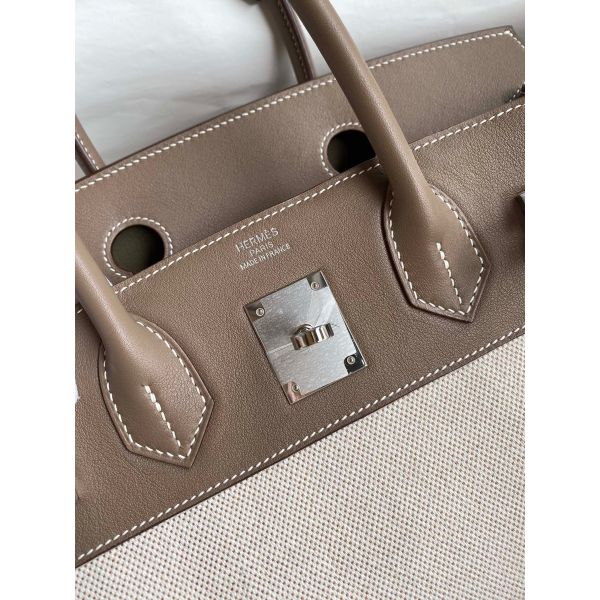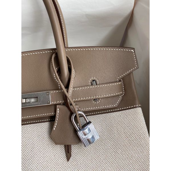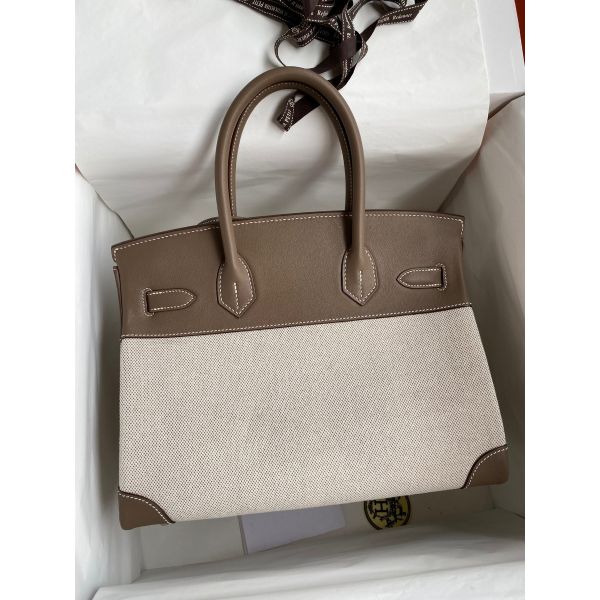 Hermes Birkin 30 Handmade Bag In Toile & Tourterelle Swift Leather