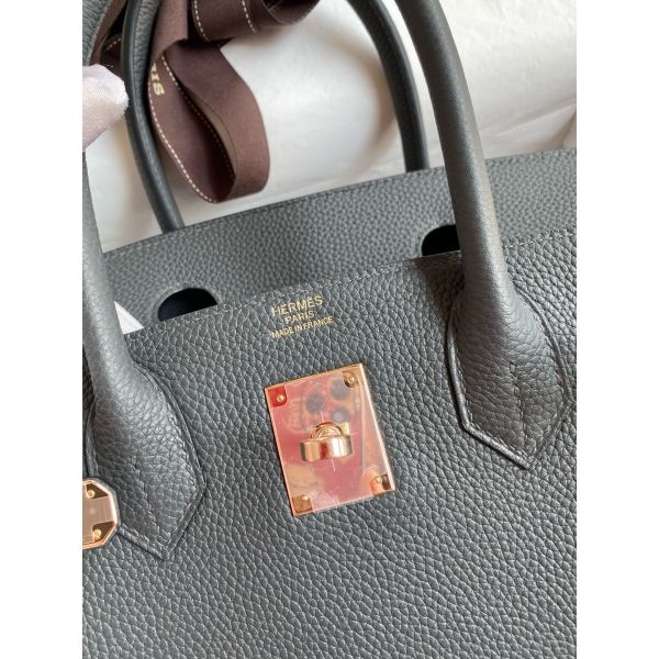 Hermes Birkin 30 Retourne Handmade Bag In Ardoise Clemence Leather