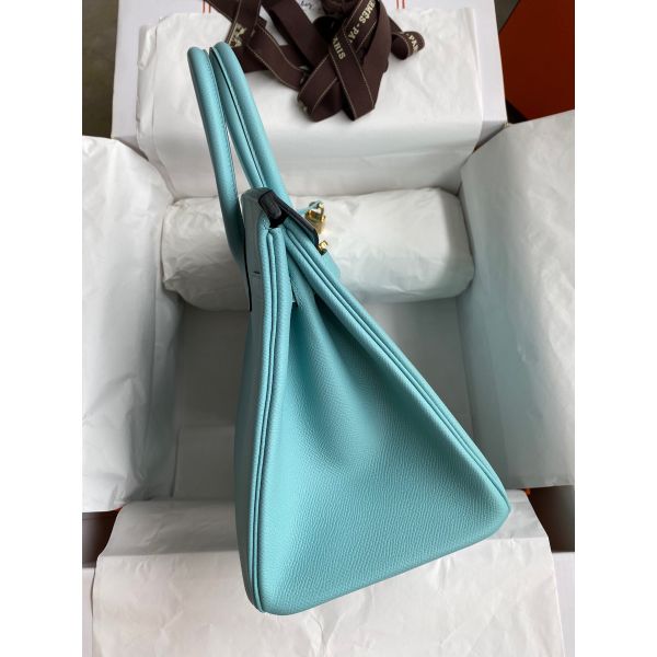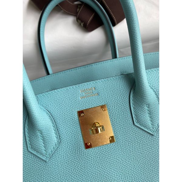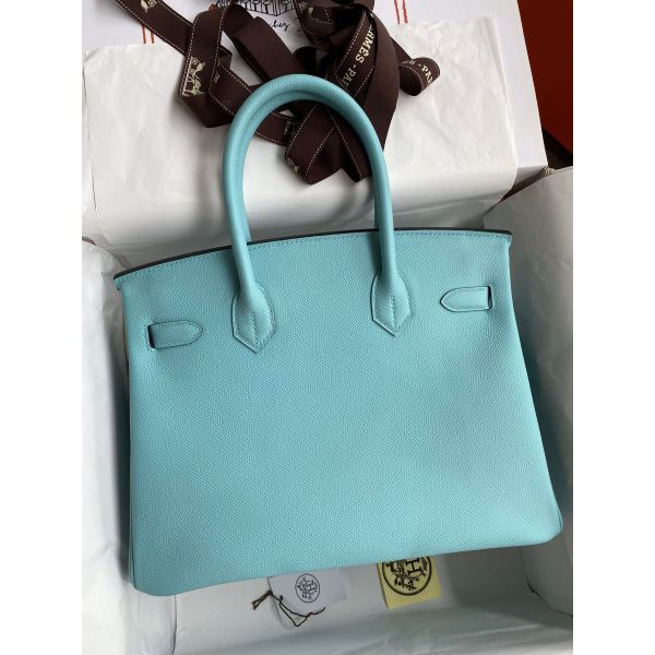 Hermes Birkin 30 Retourne Handmade Bag In Blue Atoll Epsom Calfskin