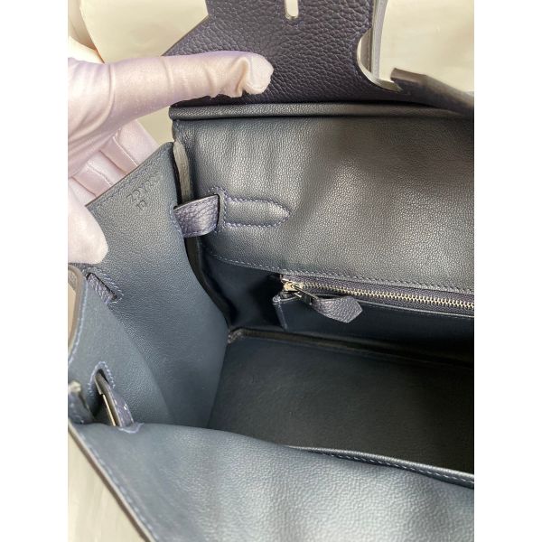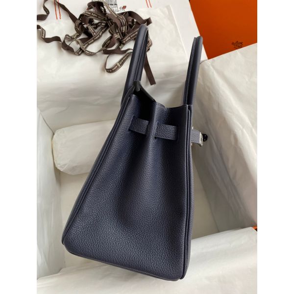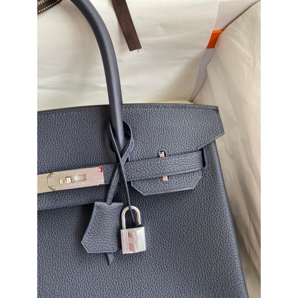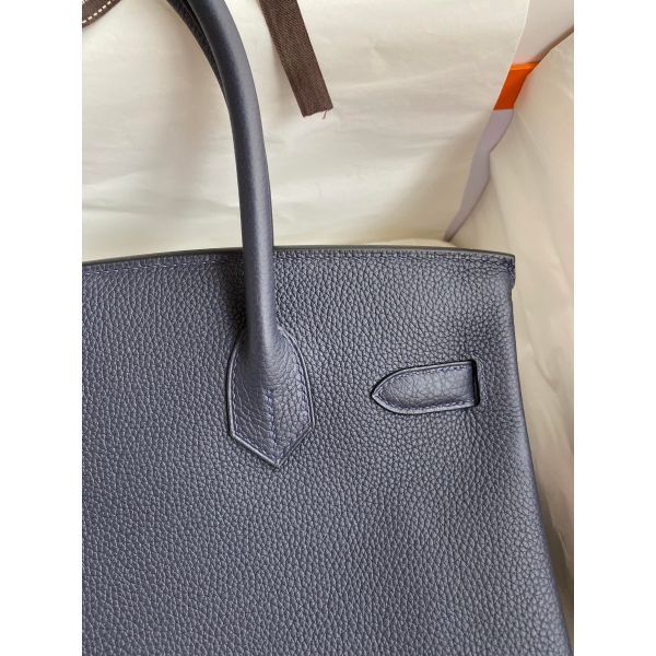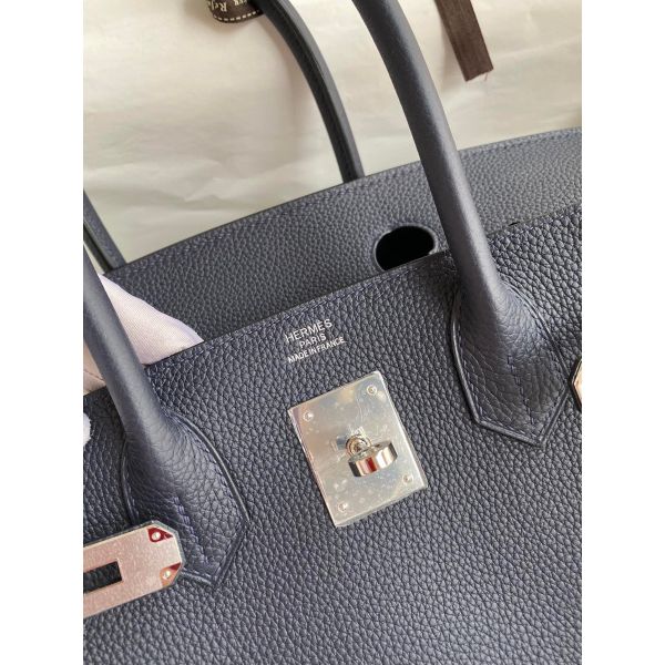 Hermes Birkin 30 Retourne Handmade Bag In Blue Nuit Clemence Leather