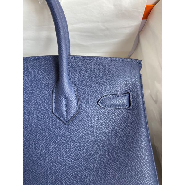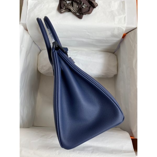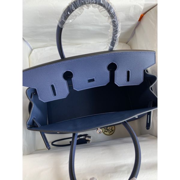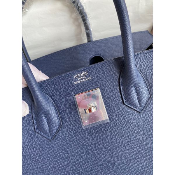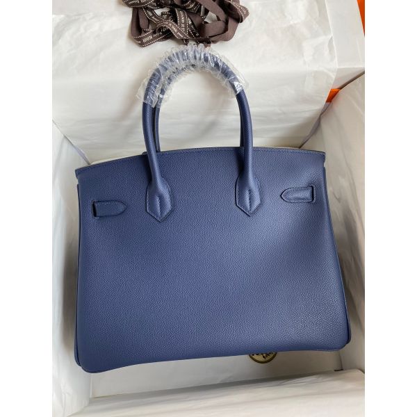 Hermes Birkin 30 Retourne Handmade Bag In Blue Saphir Epsom Calfskin